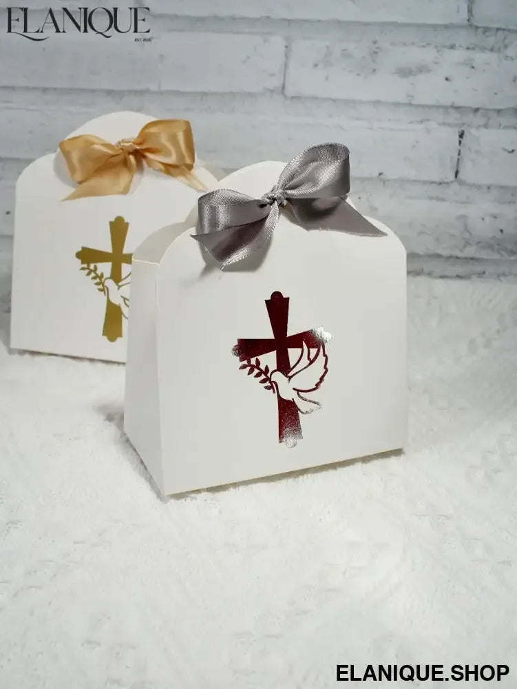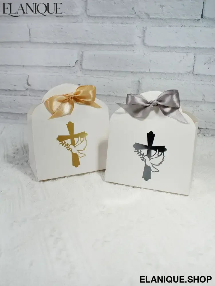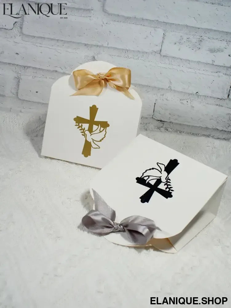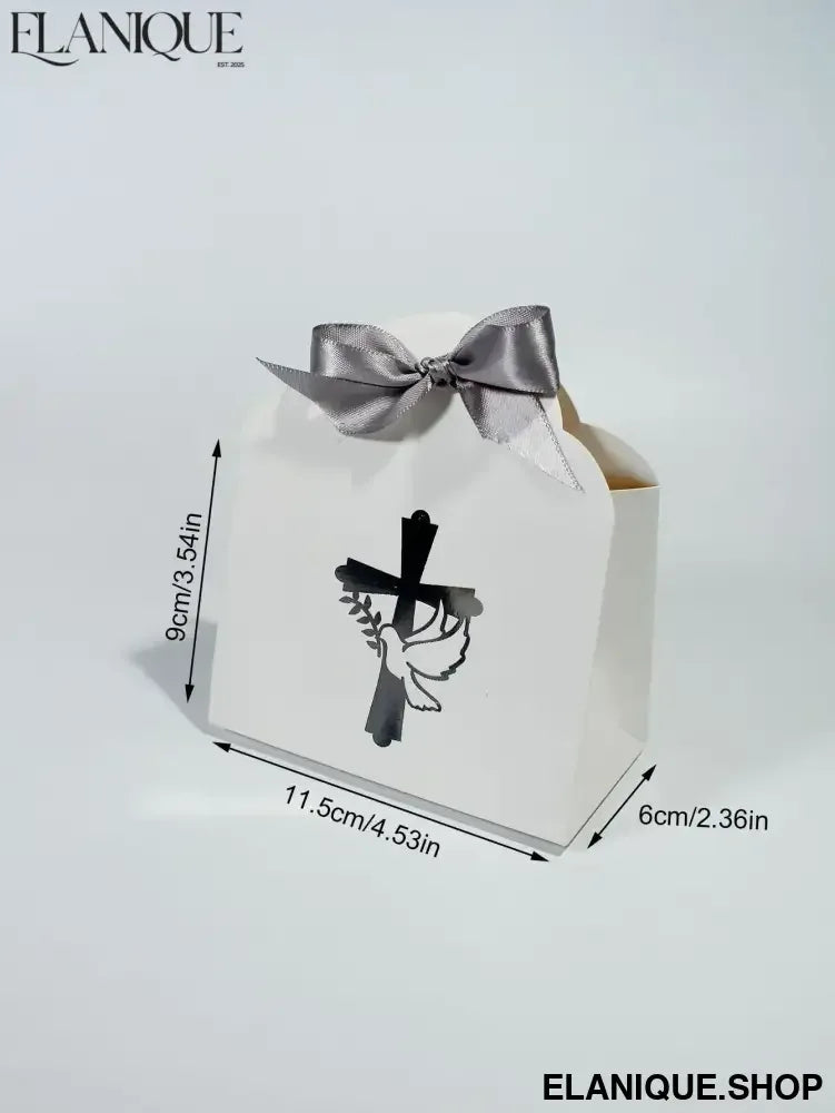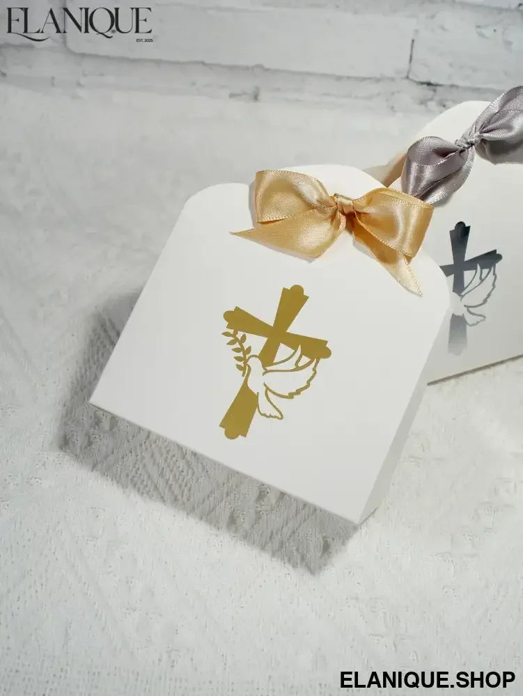 10/20pcs Christian Cross and Peace Dove Festival Candy Box, Baptism Christian Hot Stamped Ribbon Gift Packaging Box - Elanique