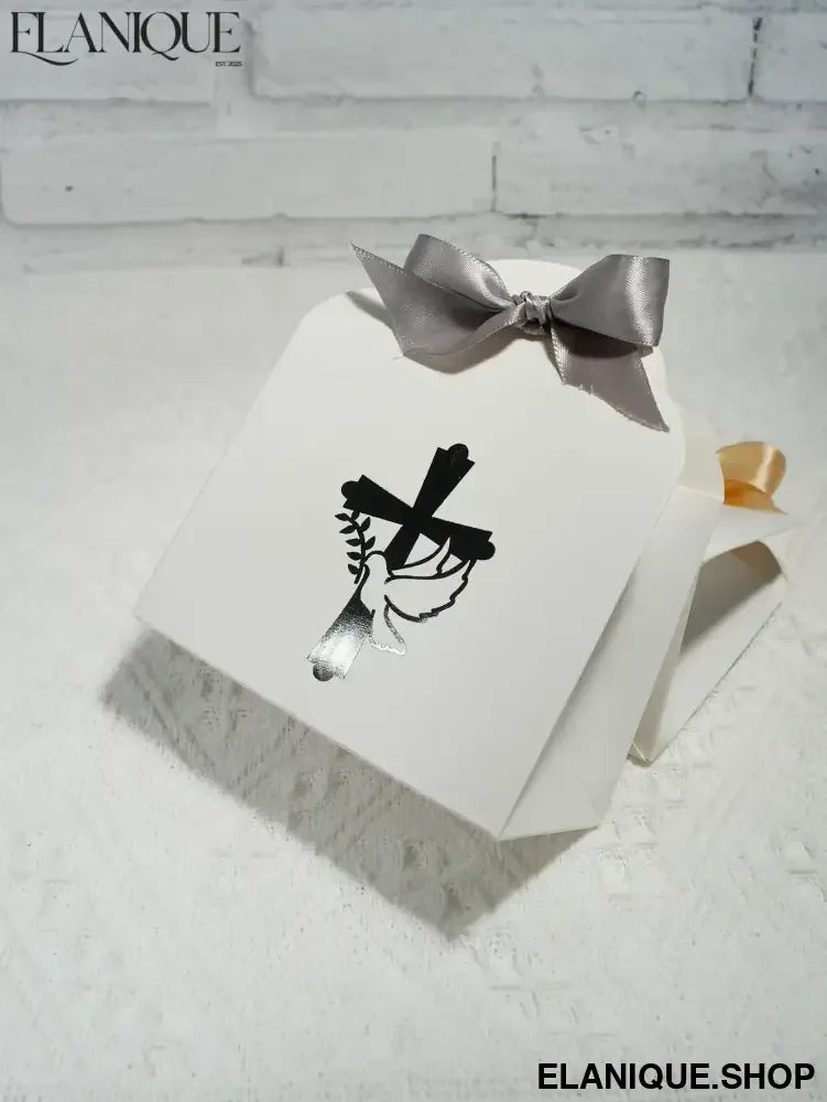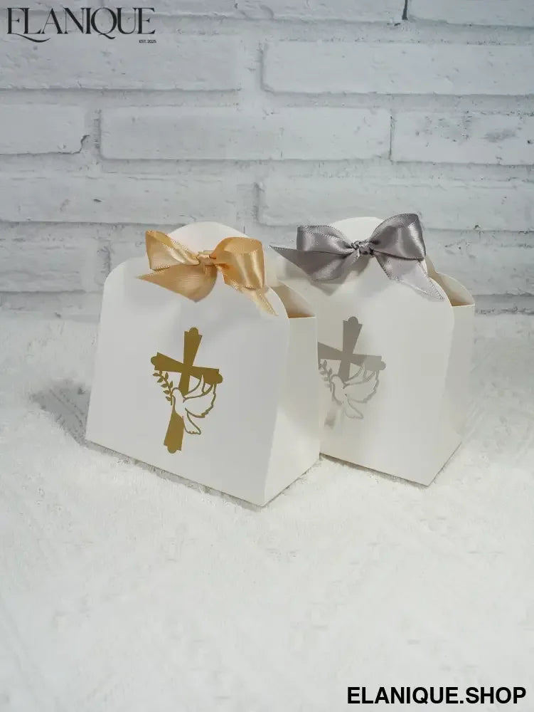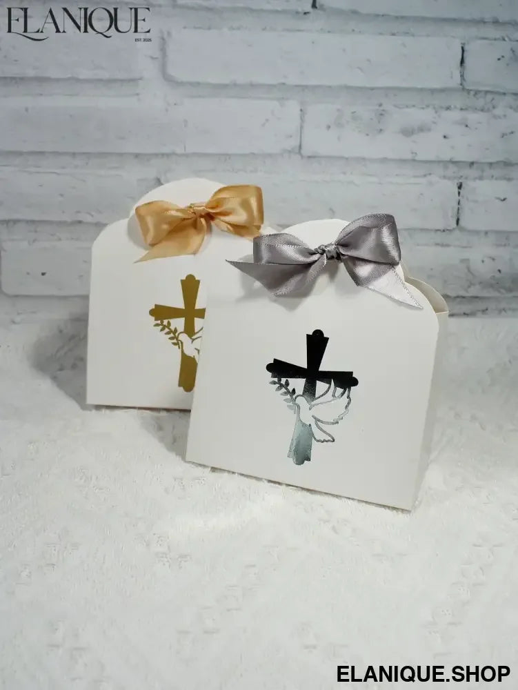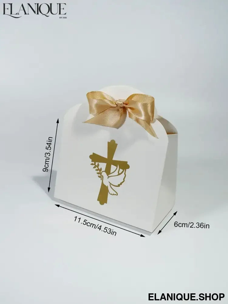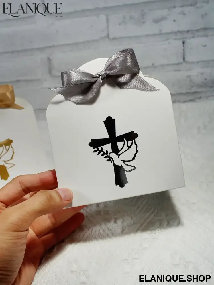 10/20pcs Christian Cross and Peace Dove Festival Candy Box, Baptism Christian Hot Stamped Ribbon Gift Packaging Box - Elanique