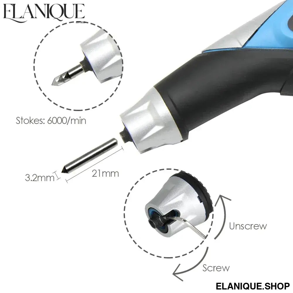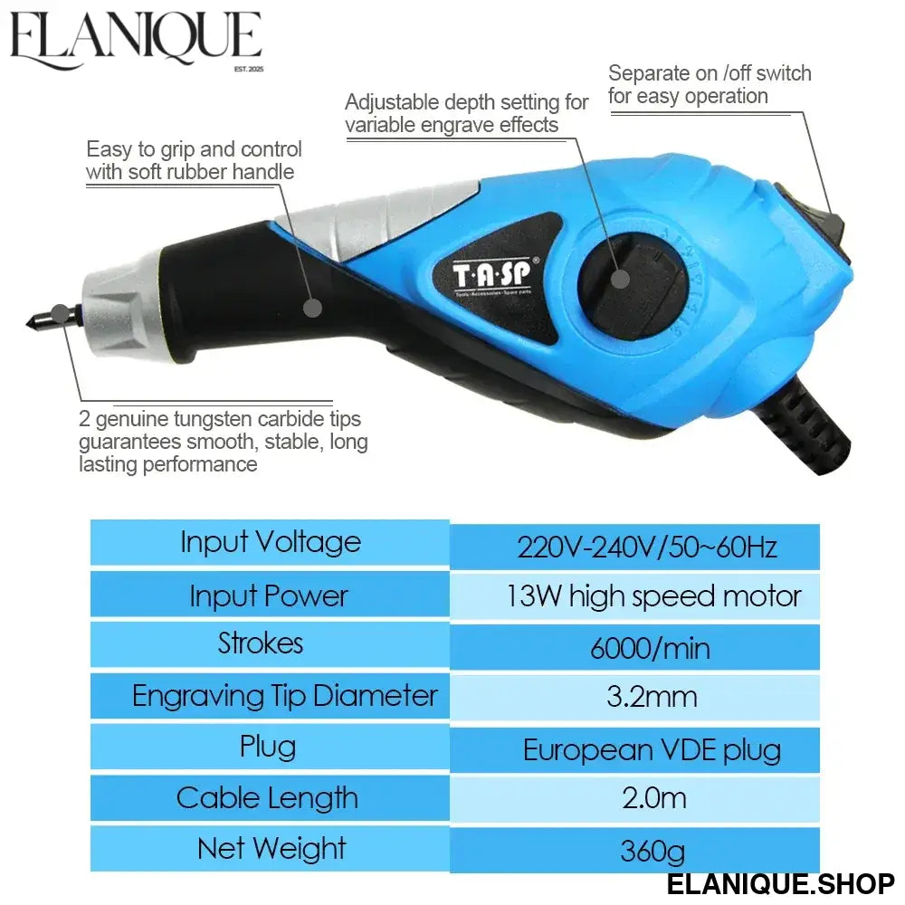 13W Electric Engraver | Carbide Tips & Stencils for Metal Wood - Elanique