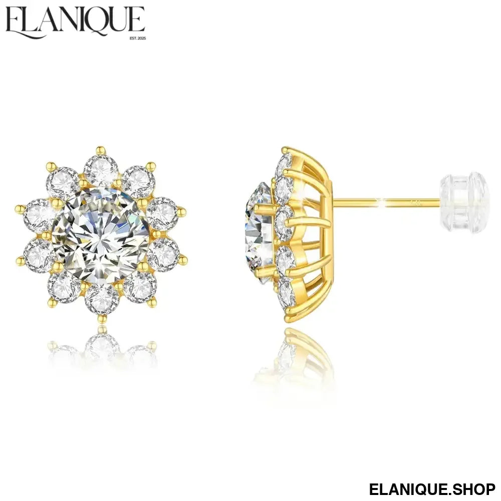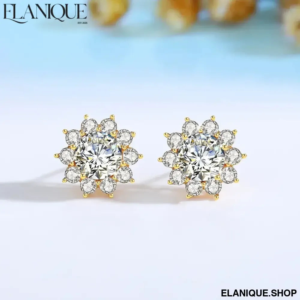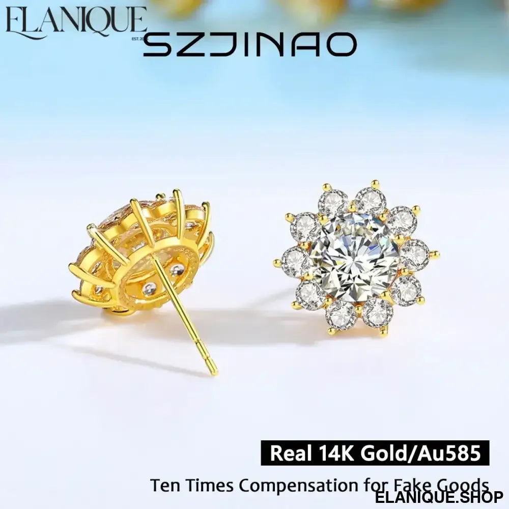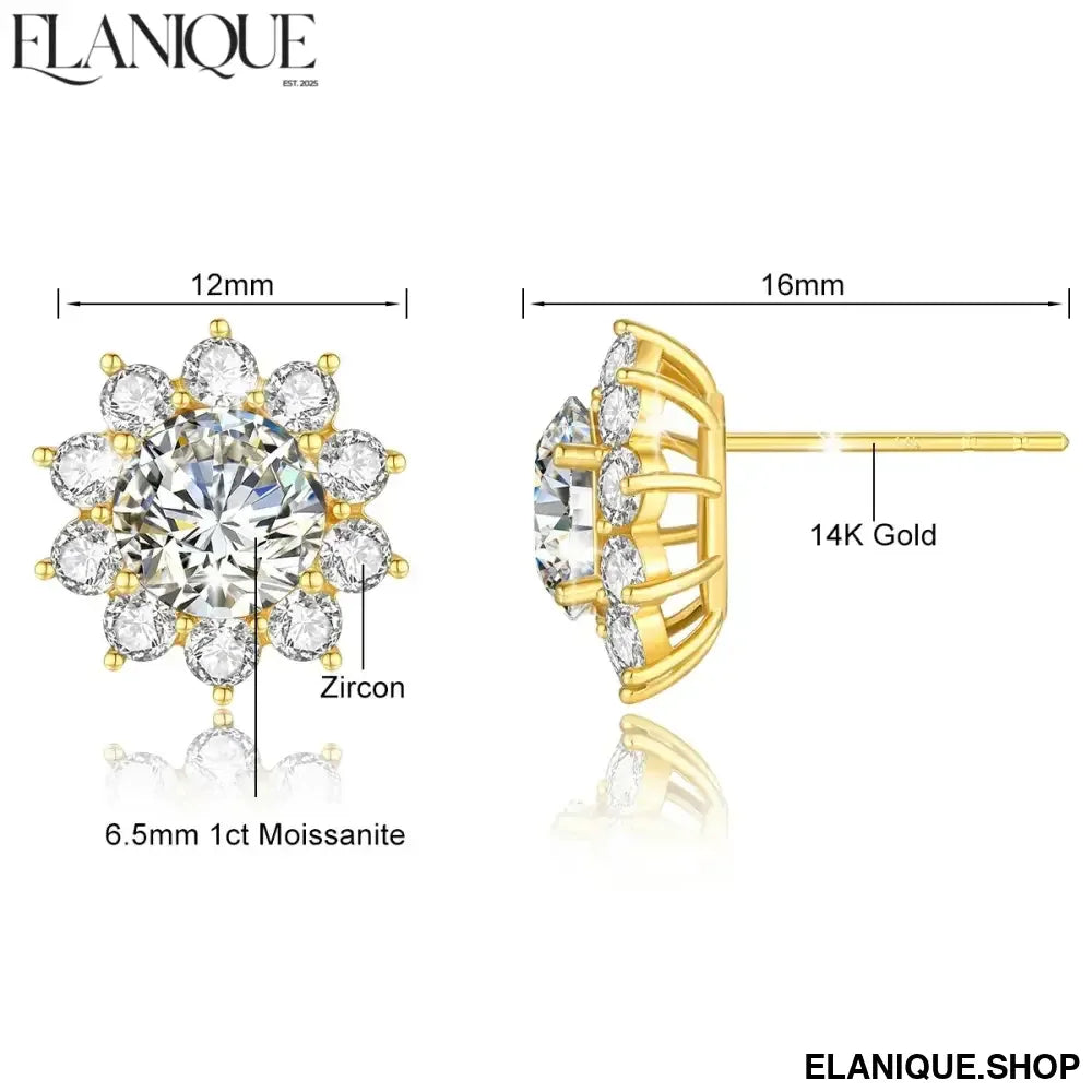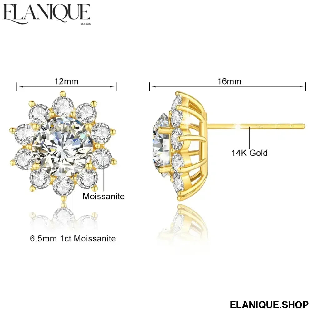 14K Gold Sunflower 2CTW Moissanite Stud Earrings for Women D/VVS1 Brilliant Round Cut Wedding Band Anniversary Day Gifts - Elanique