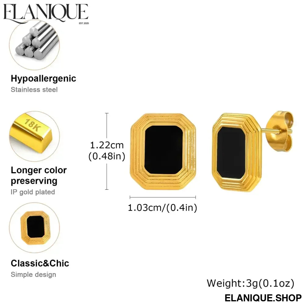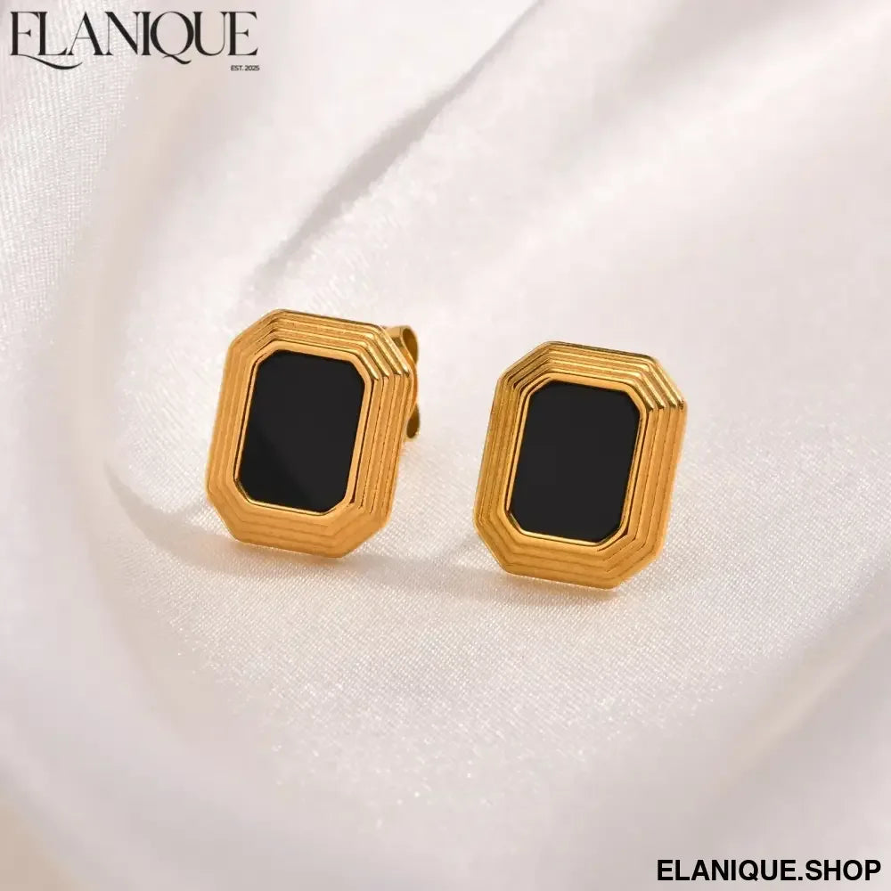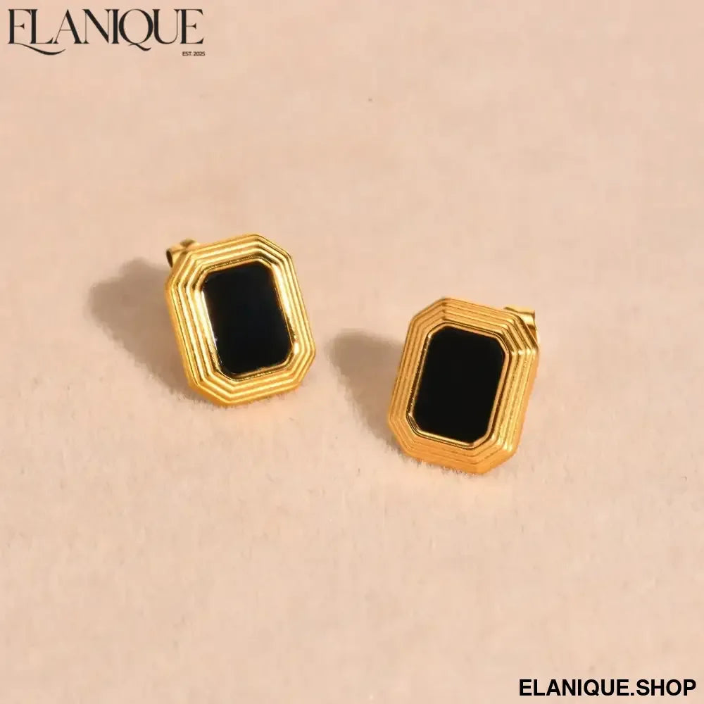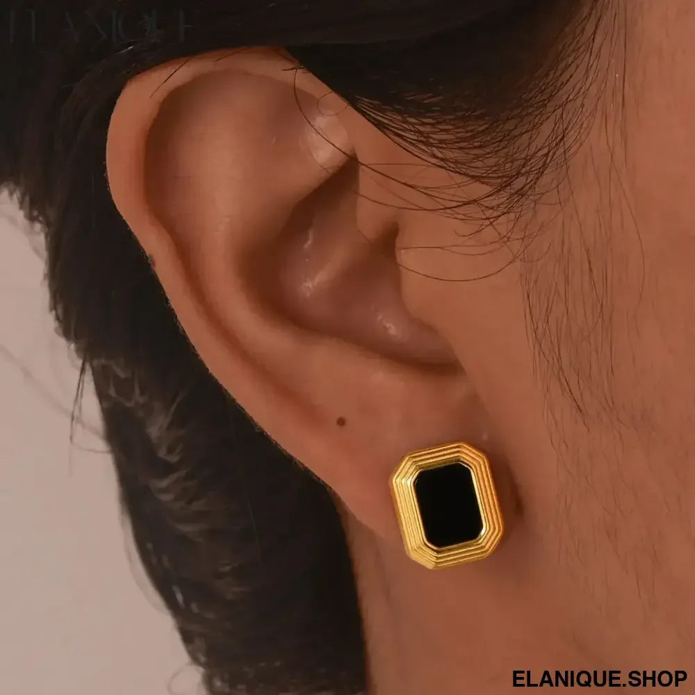 Make a sophisticated statement with these striking 18K gold plated rectangular stud earrings that blend geometric precision with natural elegance. Crafted by Meaeguet, these bold ear jewels feature dramatic black natural stone insets that create stunning contrast against the warm gold finish.
