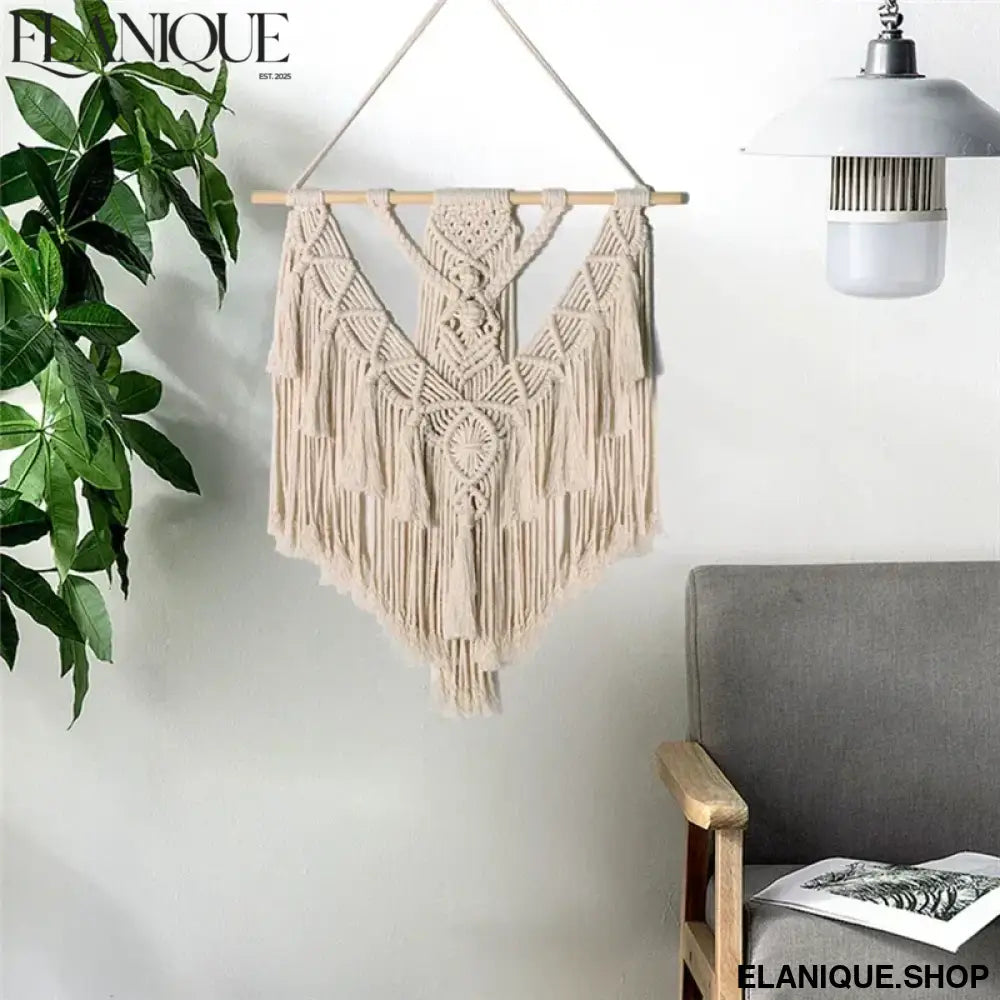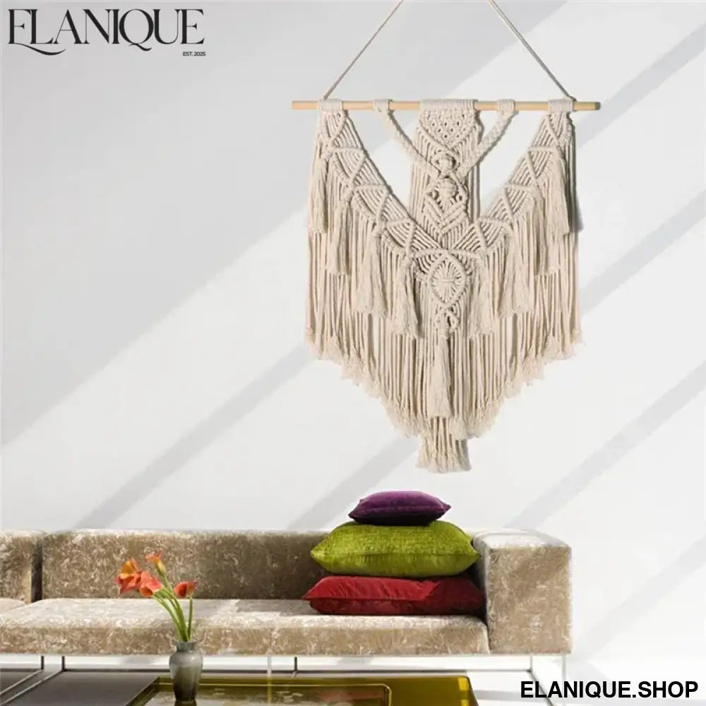 Gorgeous hand-crafted wall decor with beautiful delicate details and fringes.Wall hanging is made of cotton cord. Sturdy, durable and premium quality.