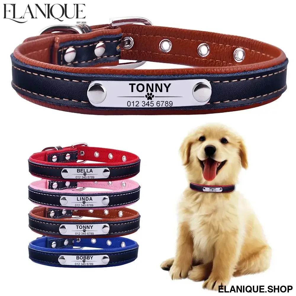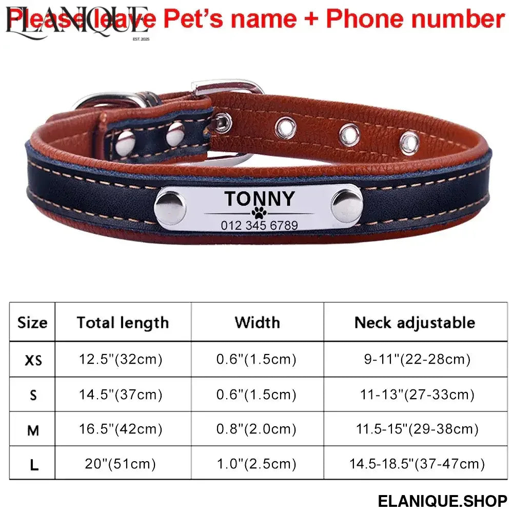 AiruiDog Personalized Leather Collar | Custom Engraved ID Name - Elanique