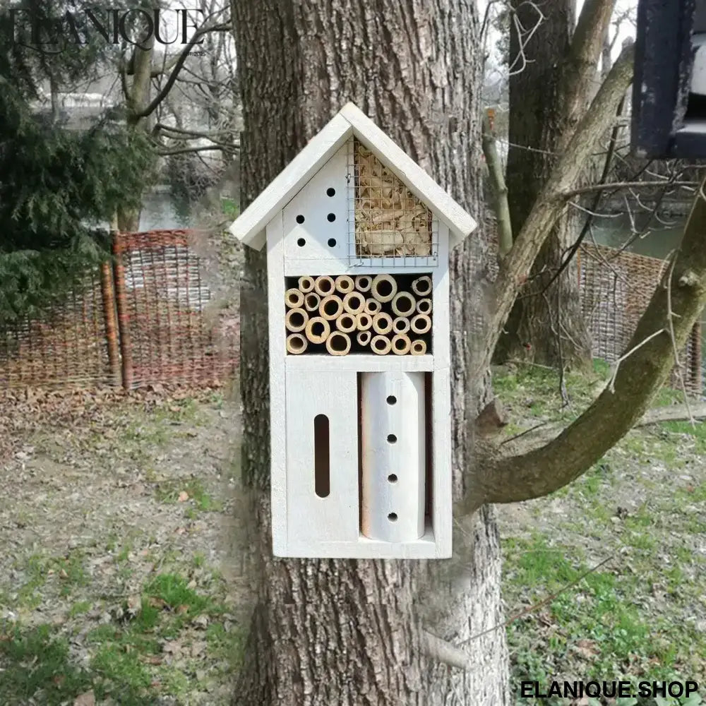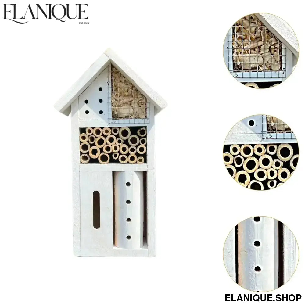 Bee Hotel Yard Butterflies Patio Handmade Bees Gifts Ladybugs Educational Tool Pollinator House Decorative Wooden Bee House - Elanique