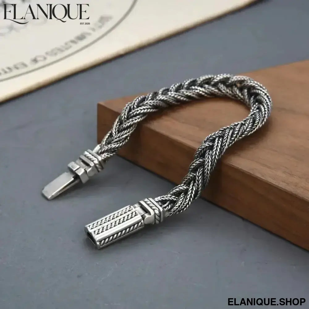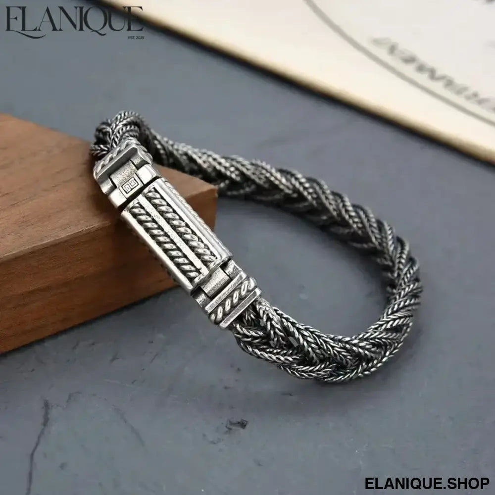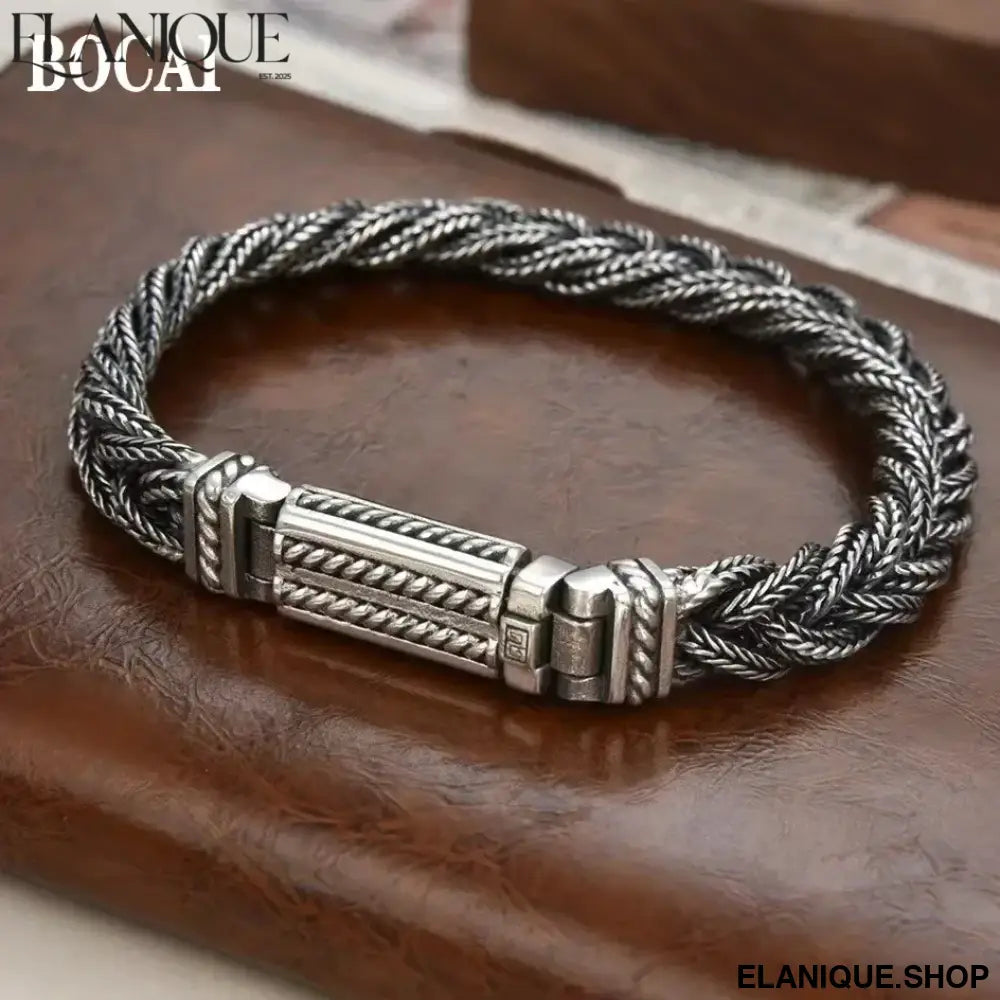 BOCAI Real S925 Silver Jewelry Retro Heavy Industry Pure Handmade Woven Twist Bracelet for Men and Women Trendy Gifts - Elanique