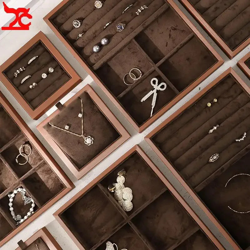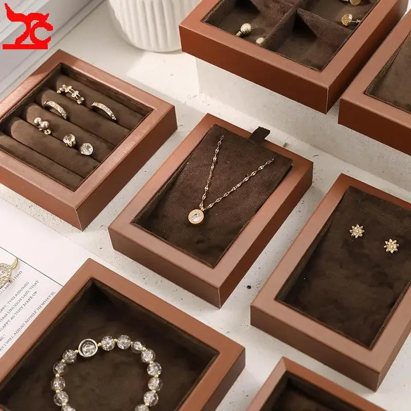 Brown Small Jewelry Organizer Tray Ring Earring Pendant Display Holder for Jewelry Counter Small Items Brooch Cufflinks Storage - Elanique