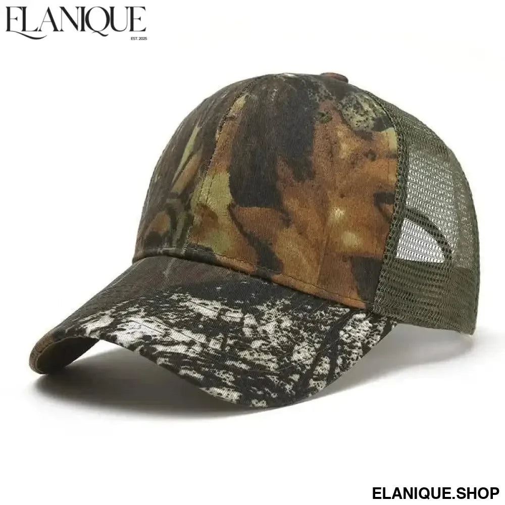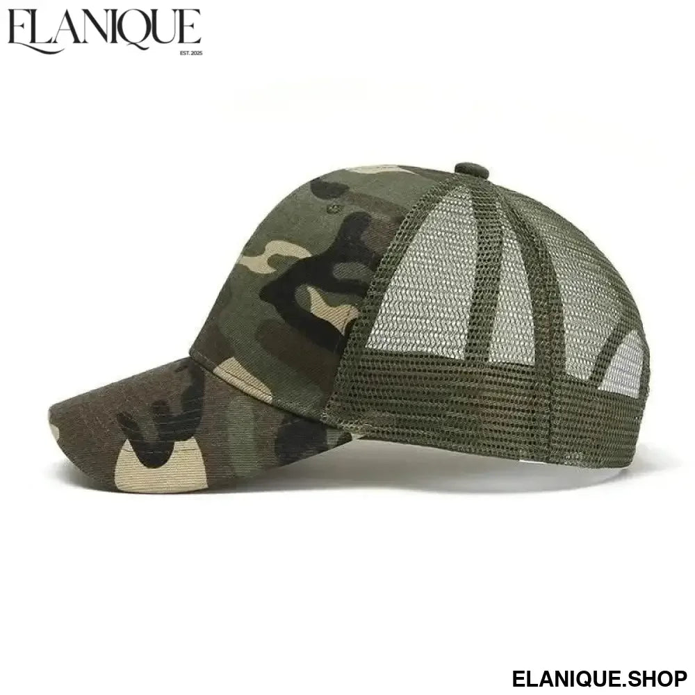 The polyester construction is chosen for its combination of durability, lightweight comfort, and ease of care. Polyester holds its colour and structure through repeated wear and washing, maintaining the vibrancy of the camo print and the shape of the curved brim through the full range of outdoor activities and everyday use. The breathable mesh back panel keeps the head cool during warmer weather and more active use, preventing the heat build-up that solid-back caps can create.