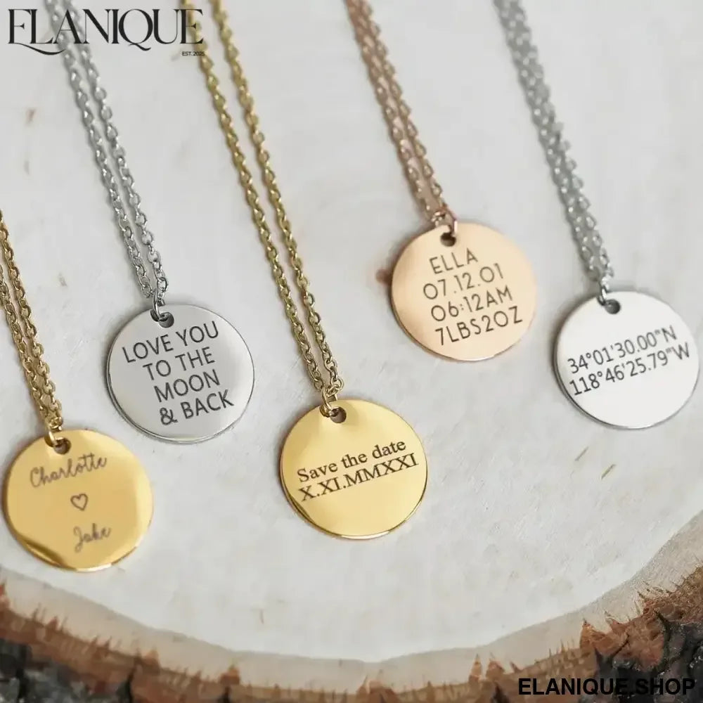 Custom Engraved Coin Pendant | Personalized Stainless Steel ID Tag - Elanique