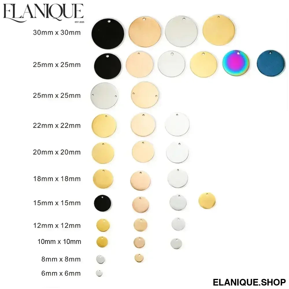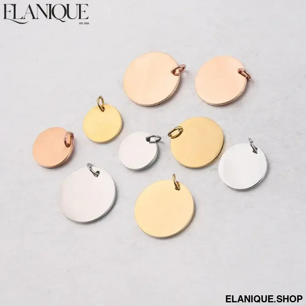 Available in silver, gold, and rose gold finishes across seven sizes from 8mm to 30mm, this pendant fits seamlessly onto bracelets and necklaces, adapting to your existing jewellery wardrobe. Stainless steel construction makes it safe for sensitive skin, resistant to tarnish, and durable enough for everyday wear. Each disc can be engraved on both sides, doubling the story it tells.