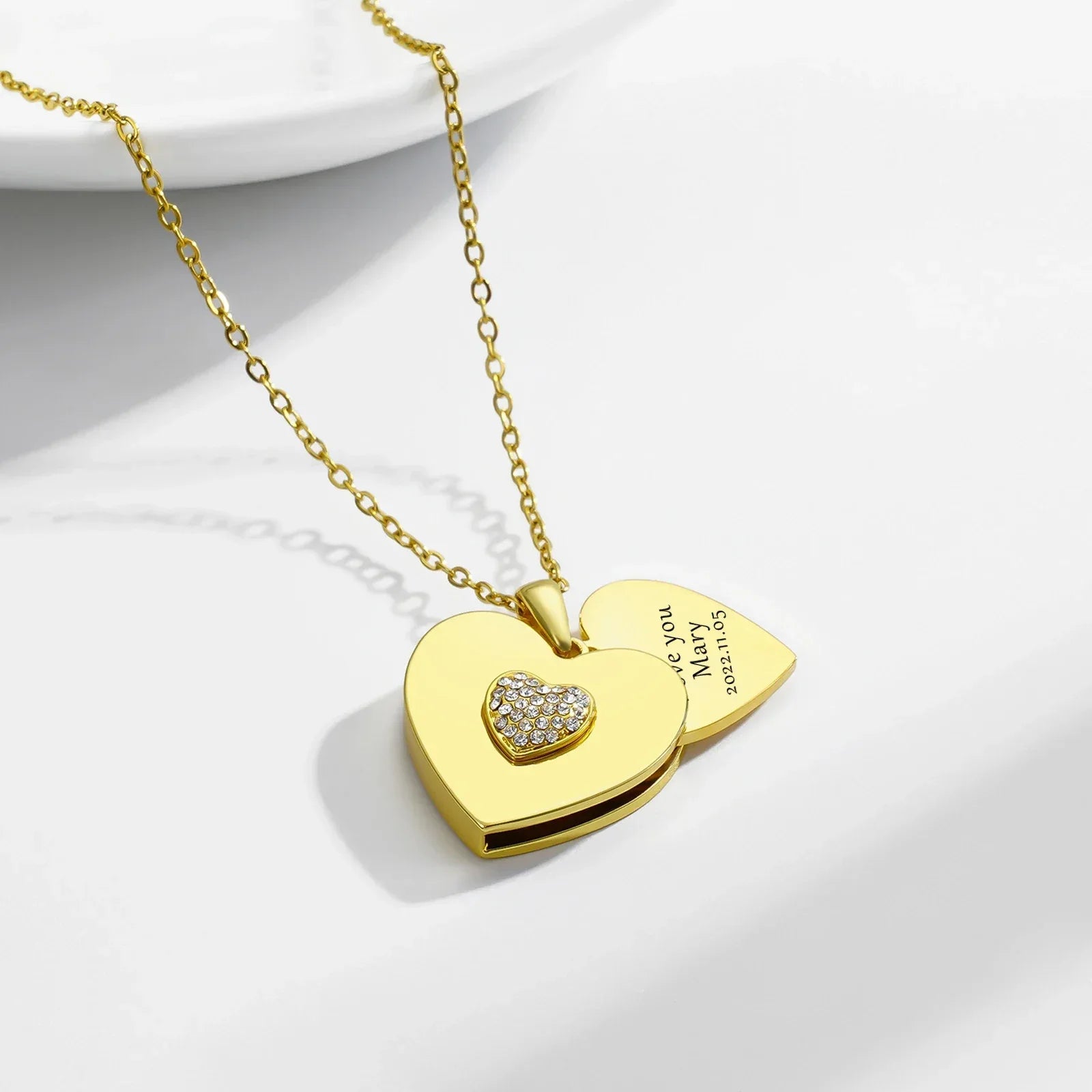 Custom Necklace Peach Heart Girlfriend Couple Combination Love Clavicle Chain Stainless Steel Engraved Name Valentine&