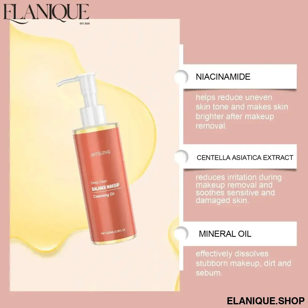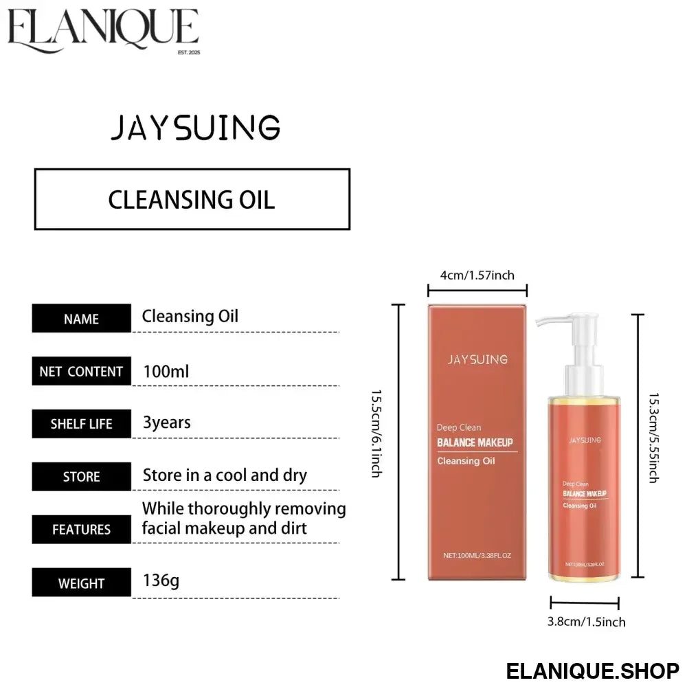JAYSUING Deep Cleansing Oil Makeup Remover Oil Control Lip Eye Pore Gentle Cleansing Exfoliating Moisturizing Refreshing Facial Cleanser 100ml