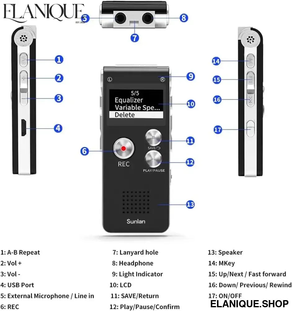 Digital Voice Activated Recorder with Playback 8GB MP3 Player Sound Audio Recorder Professional Mini USB Flash Drive Recording - Elanique