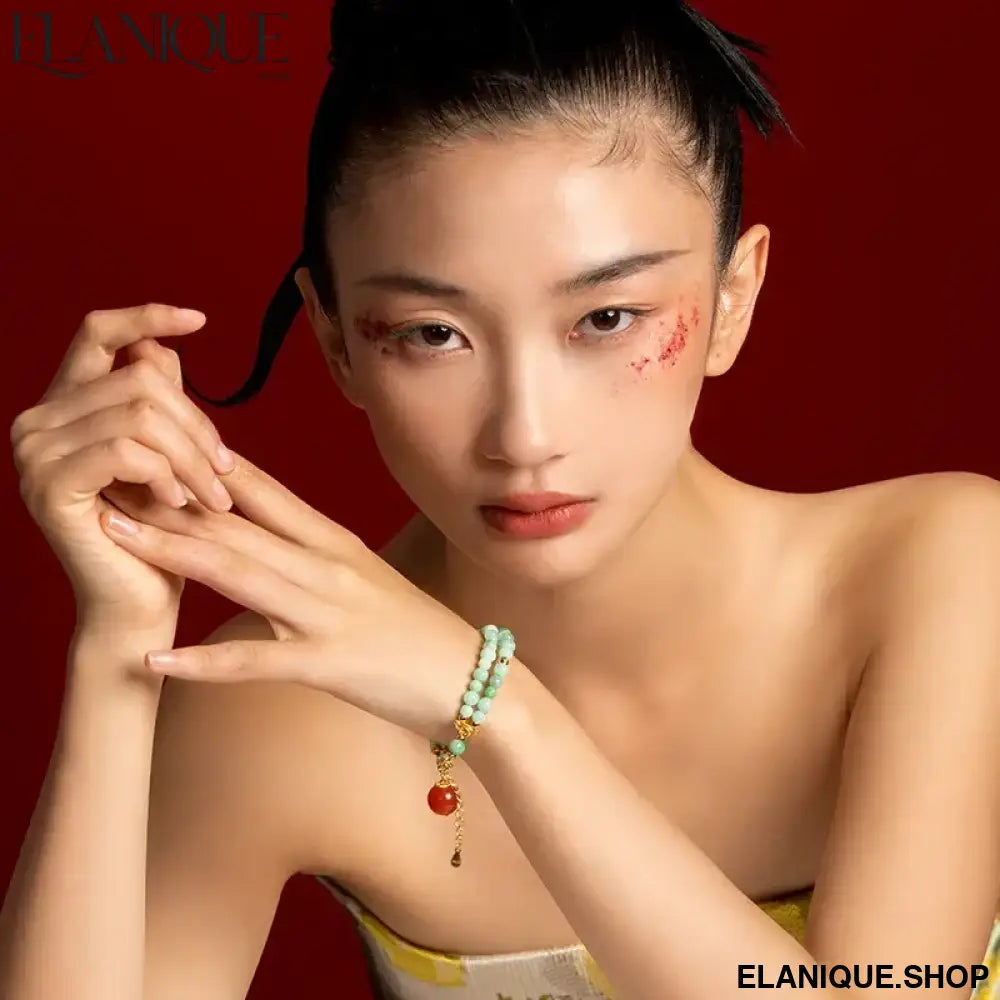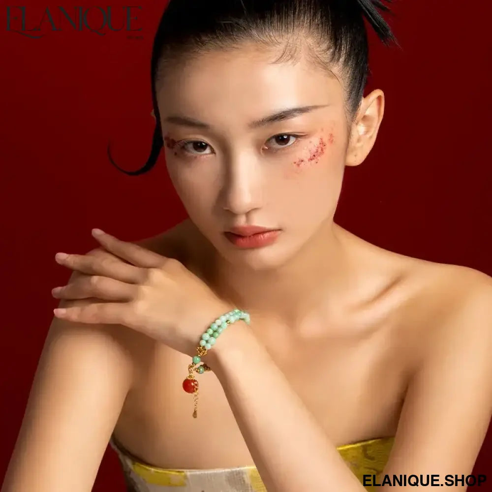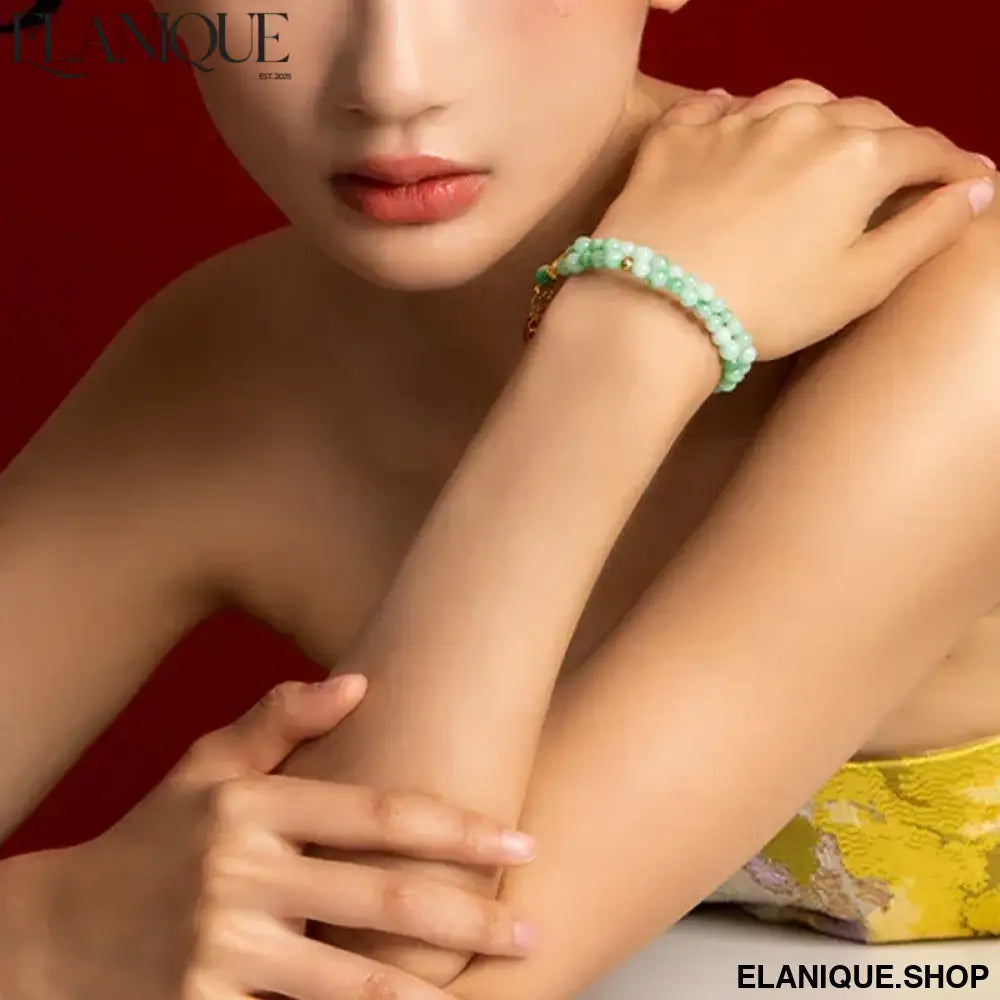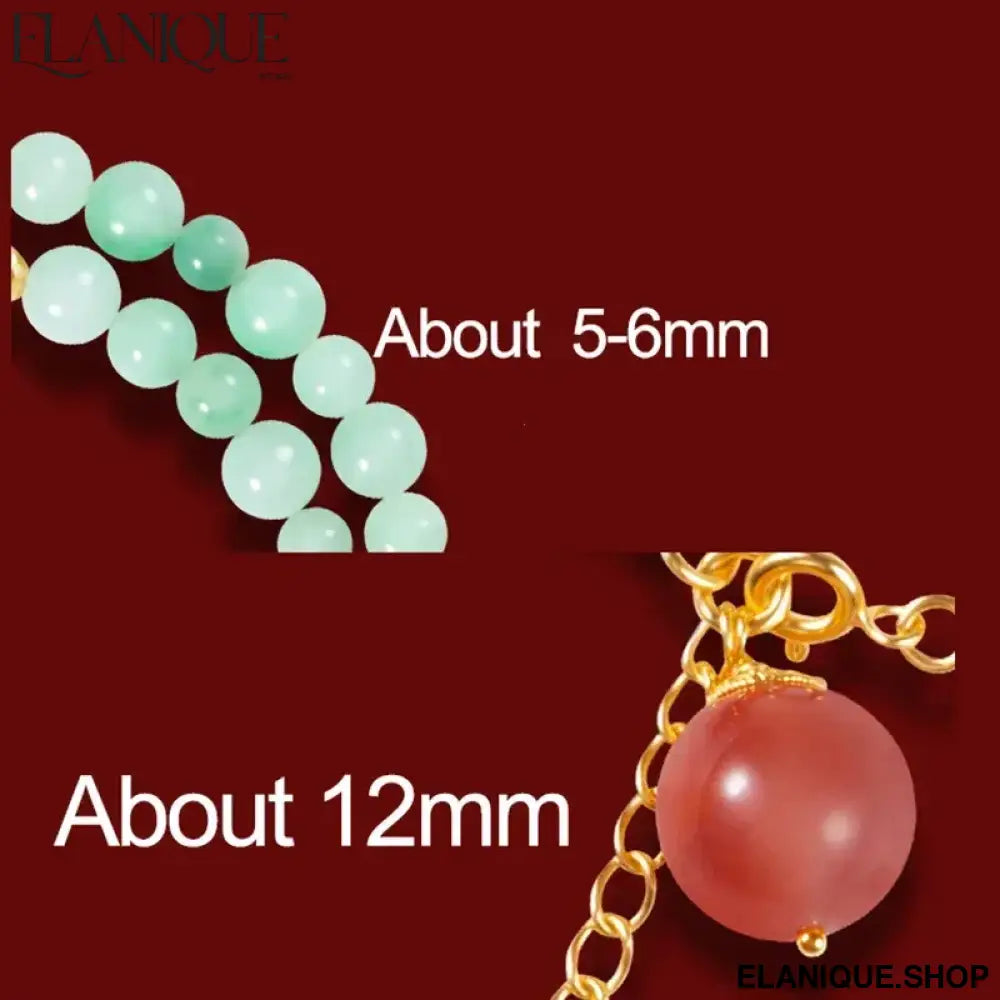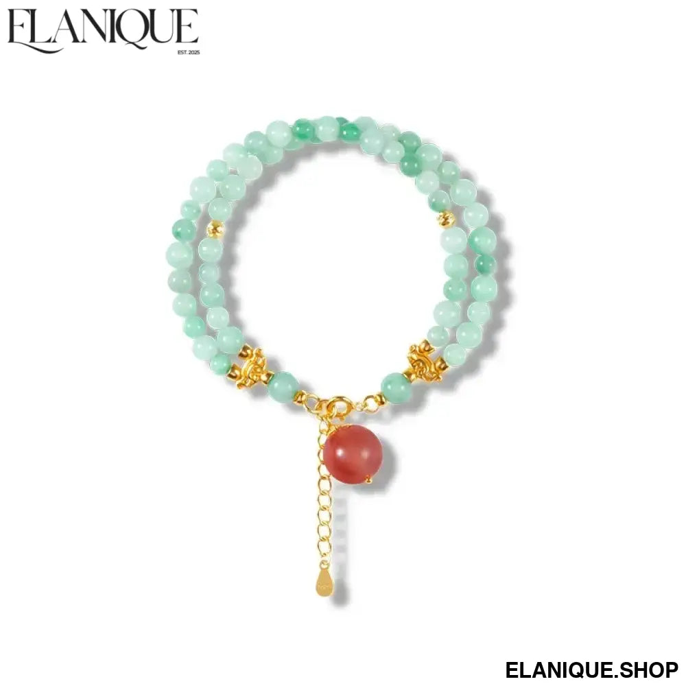 Double-Loop Bracelet for Women S925 Sterling Silver Plated 18K Gold 5mm Nanhong Bead Handmade Bracelet Authentic Type A Jadeit - Elanique