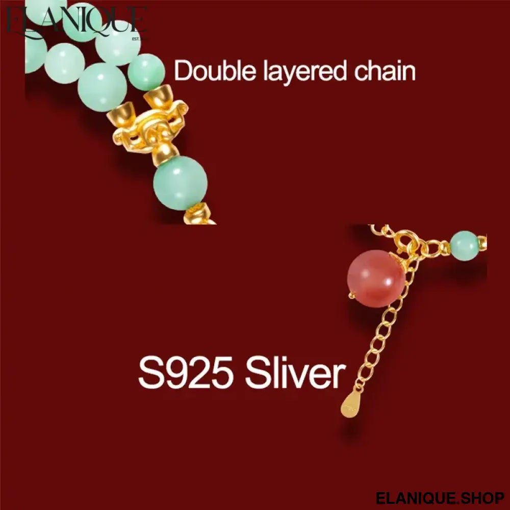 Double-Loop Bracelet for Women S925 Sterling Silver Plated 18K Gold 5mm Nanhong Bead Handmade Bracelet Authentic Type A Jadeit