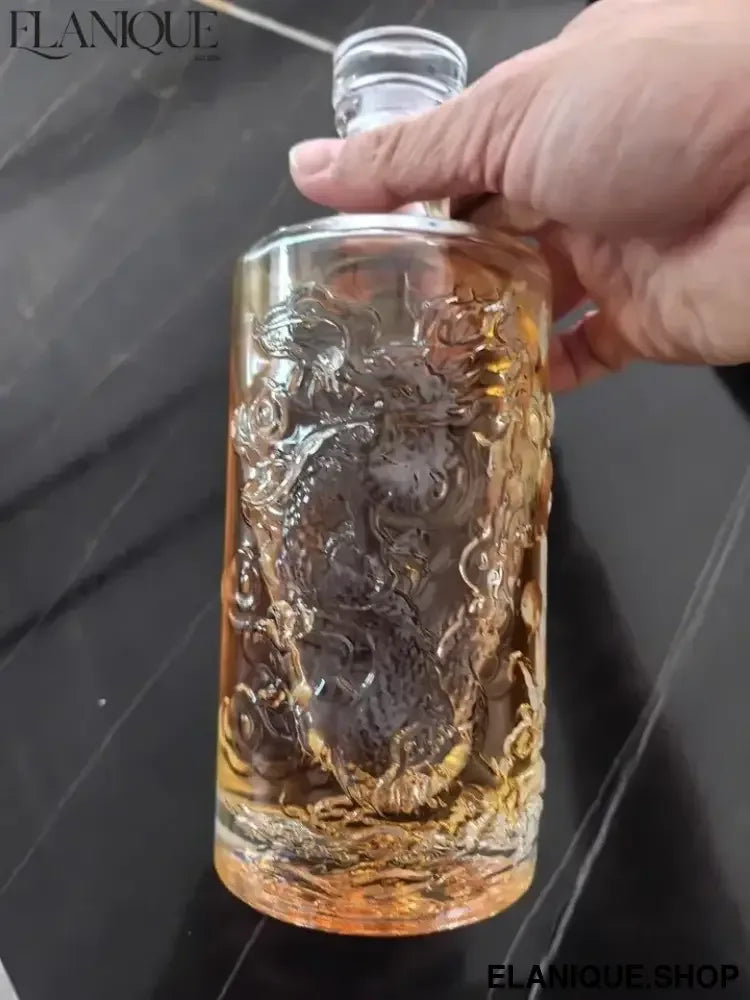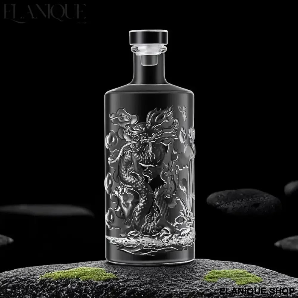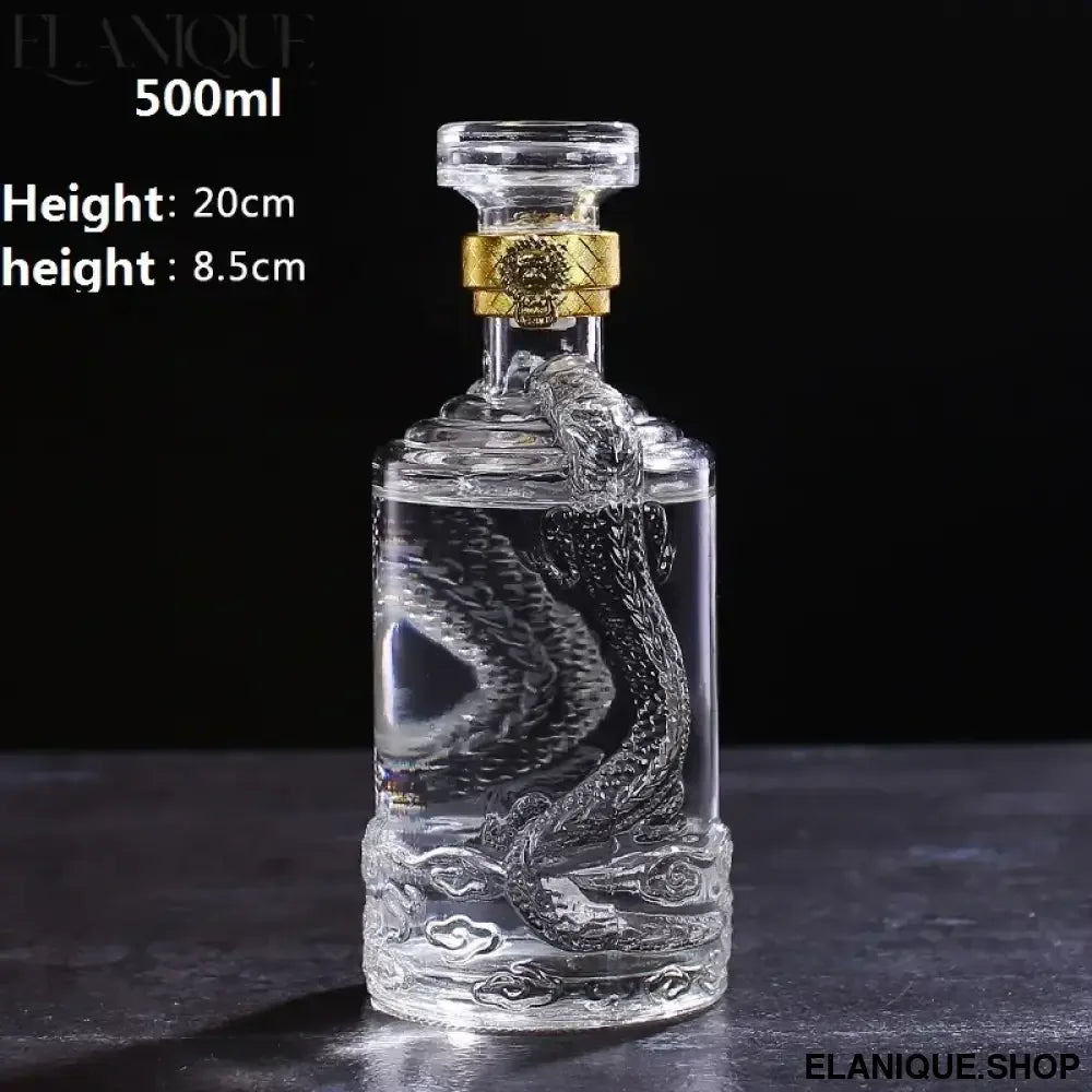 Dragon Engraved Whiskey Decanter | 500ML Round Barware Bottle - Elanique