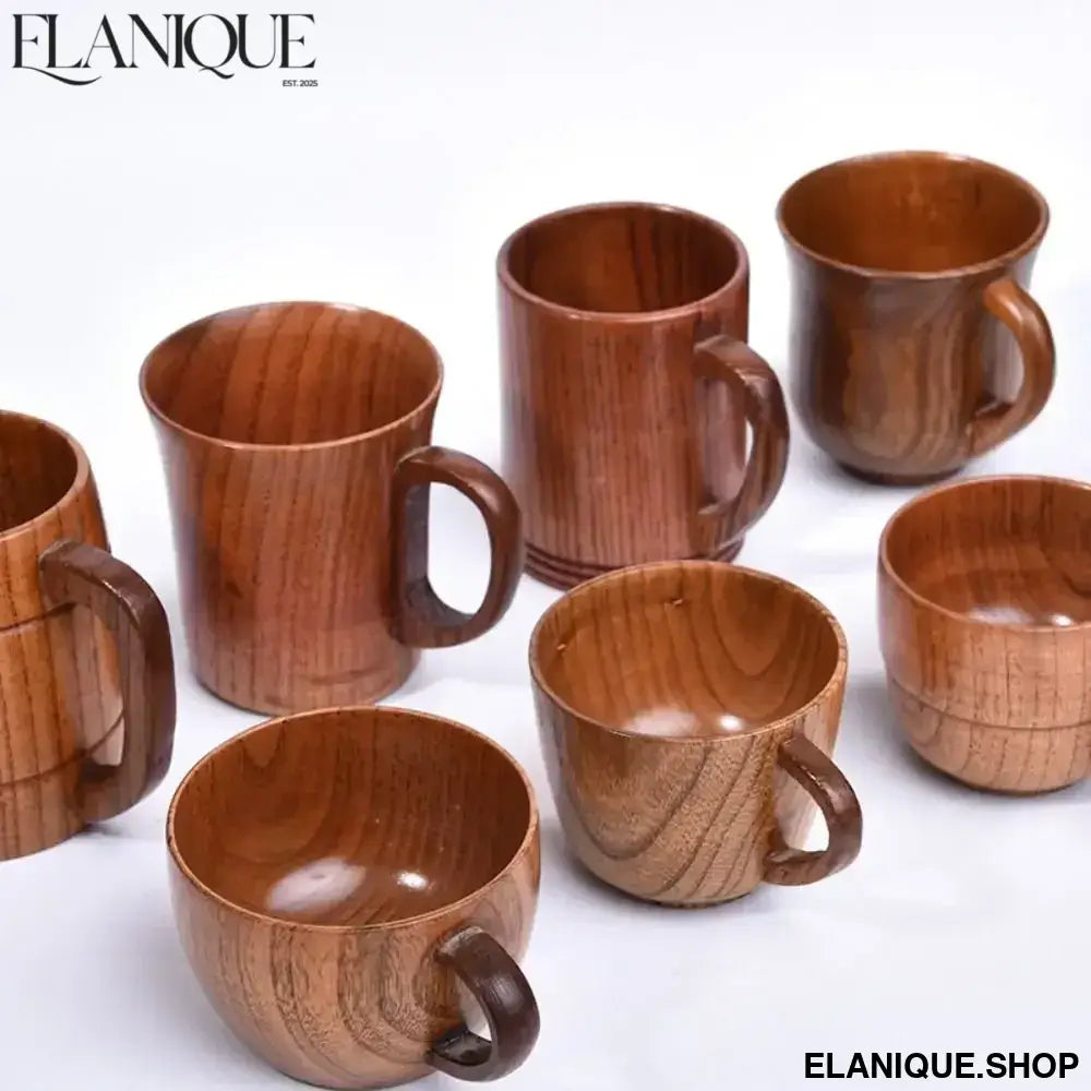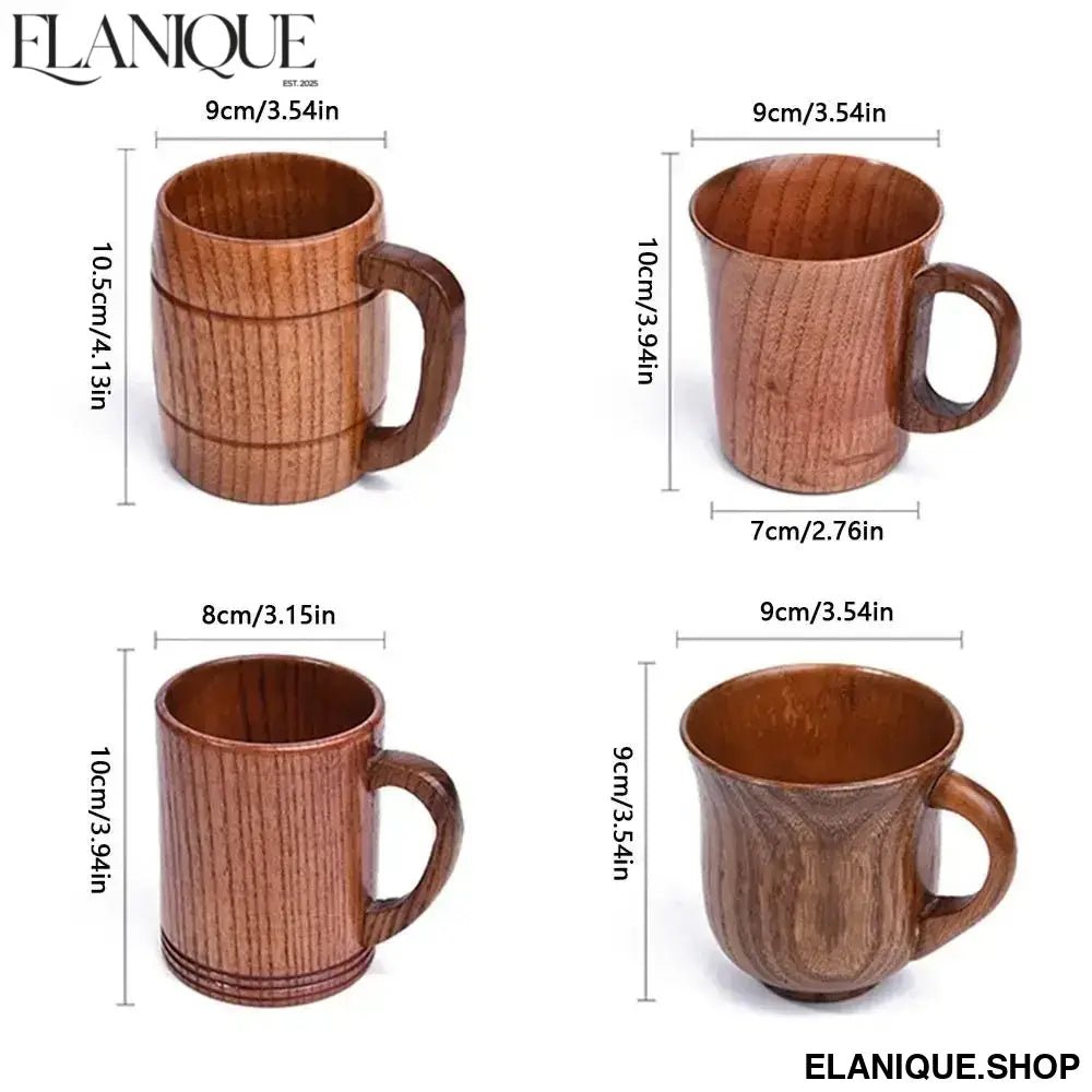 Drinkware Vintage Wooden Tea Cup Handmade Japanese Style Wood Coffee Mug Solid Wood with Handle Drinking Cup Restaurant - Elanique