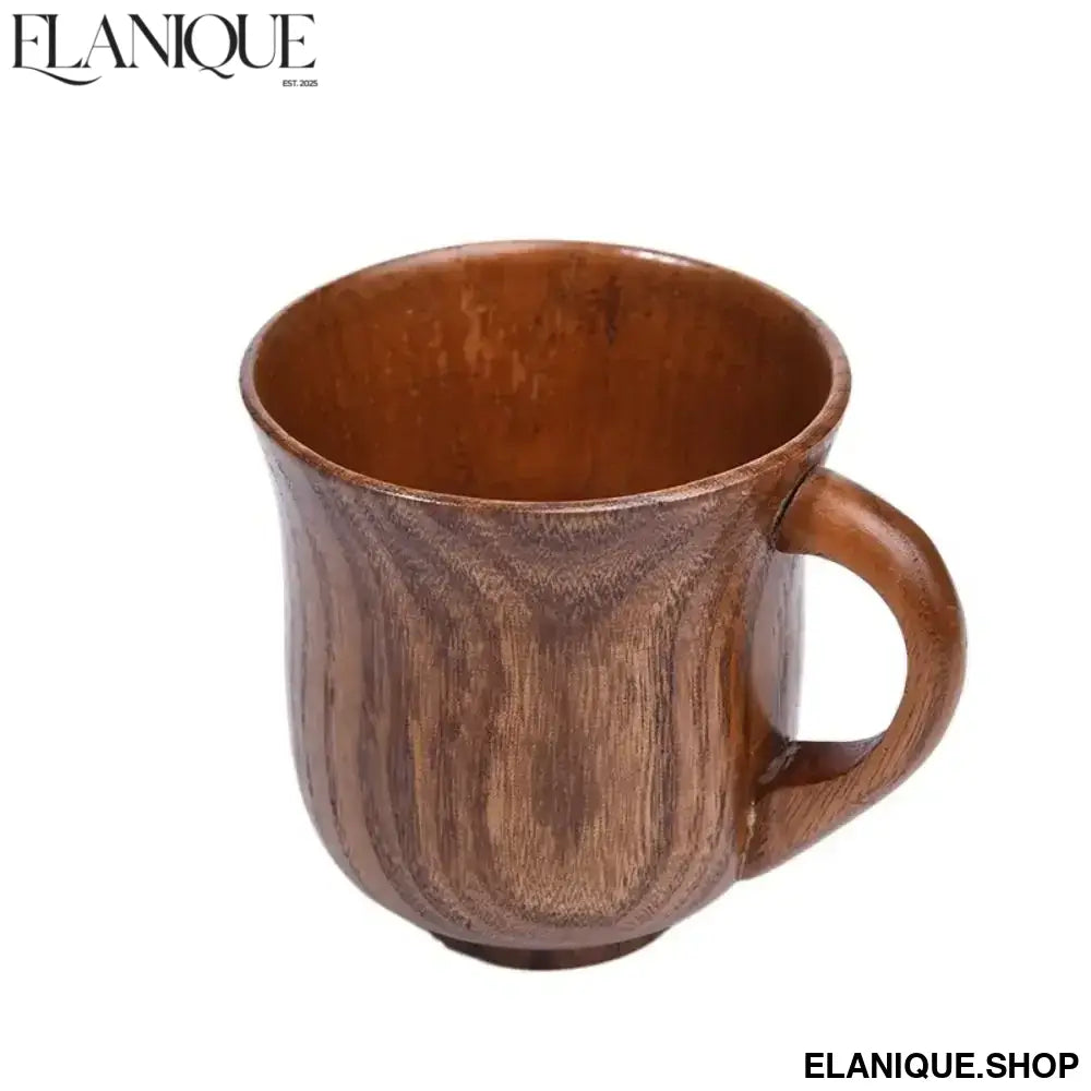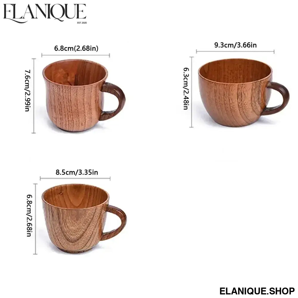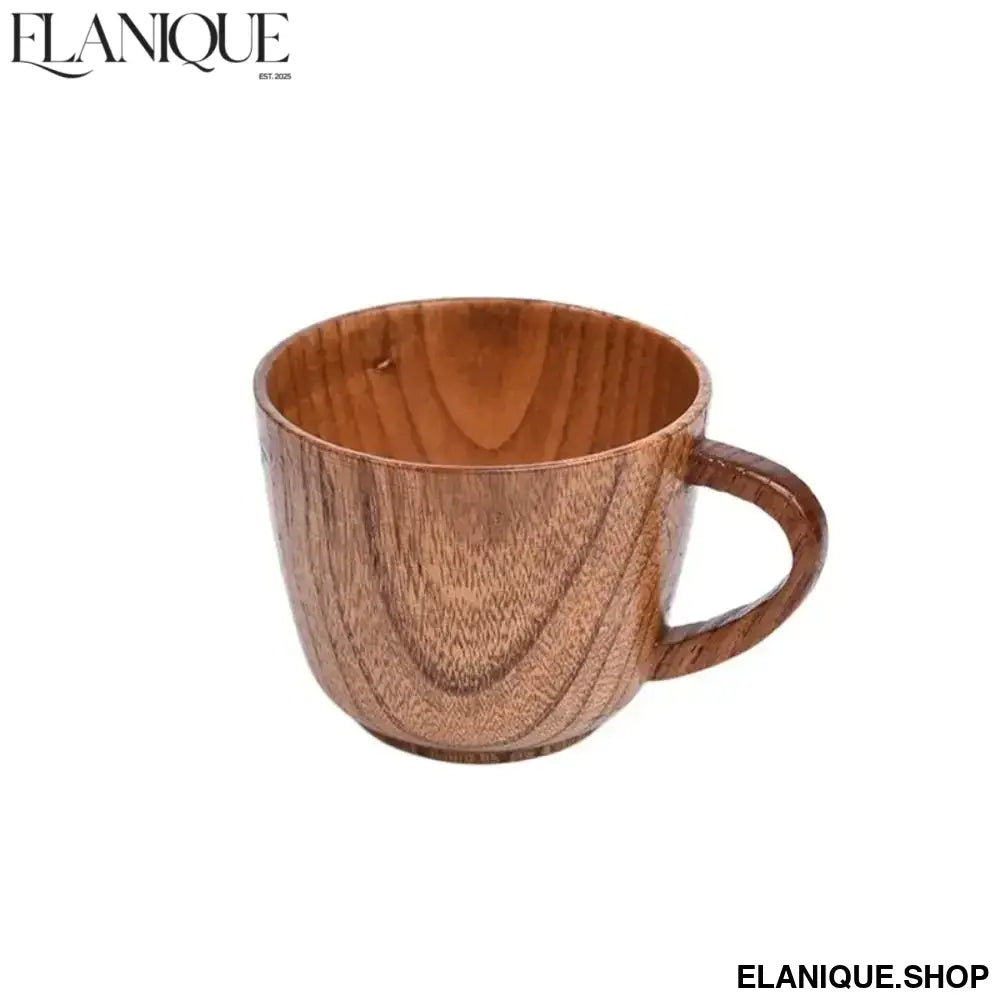 Drinkware Vintage Wooden Tea Cup Handmade Japanese Style Wood Coffee Mug with Handle Solid Wood Drinking Cup for Milk Hot Drinks - Elanique
