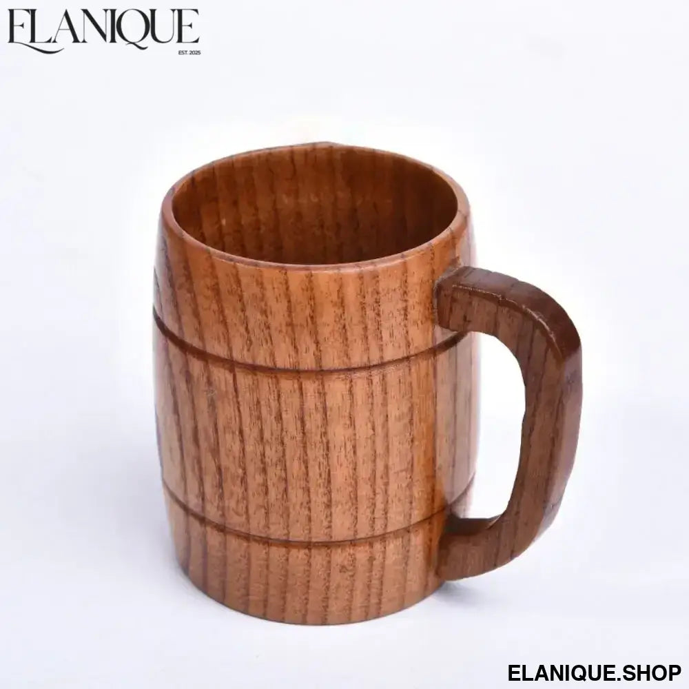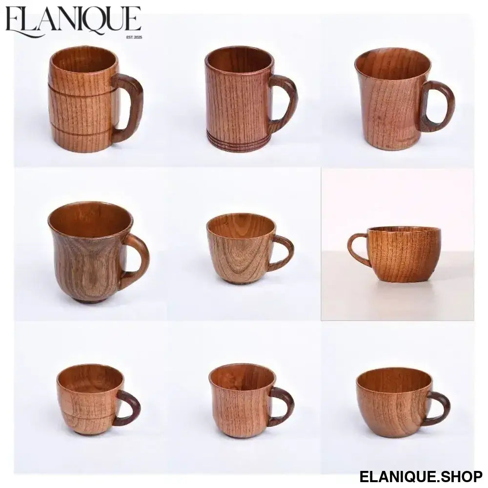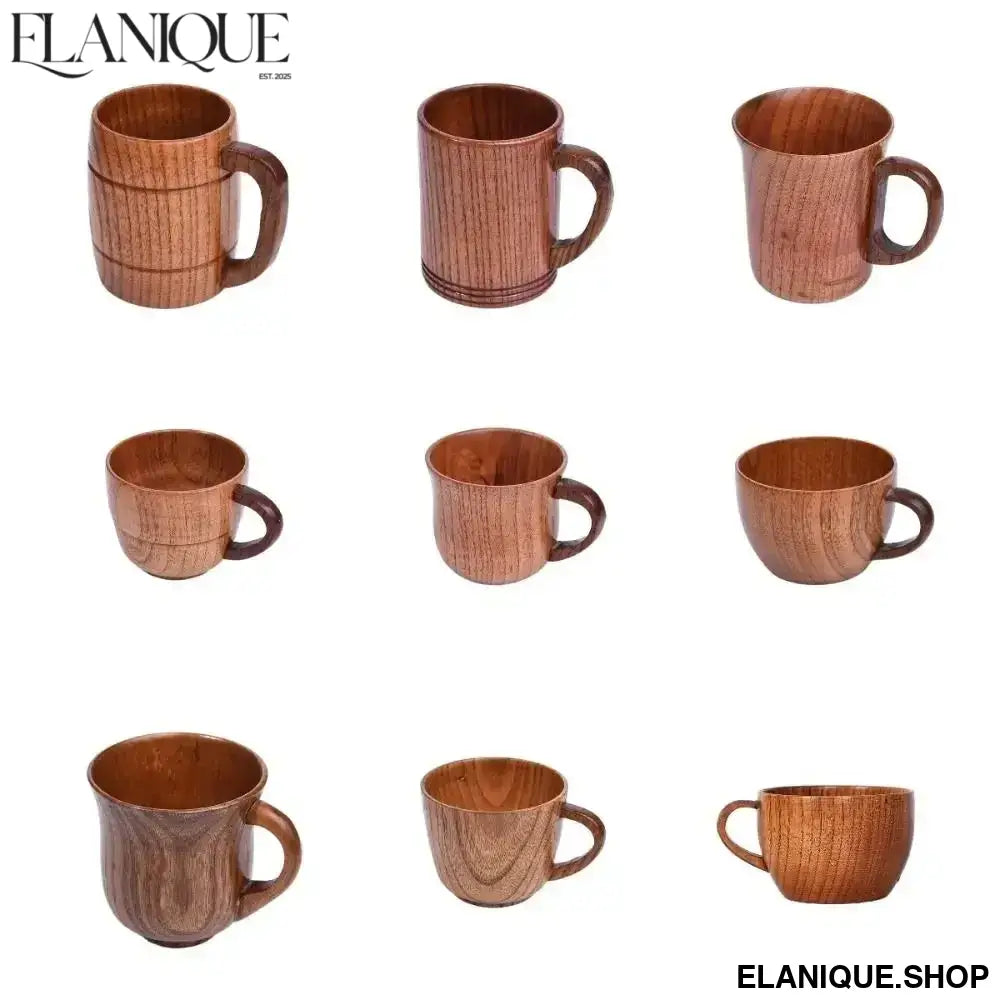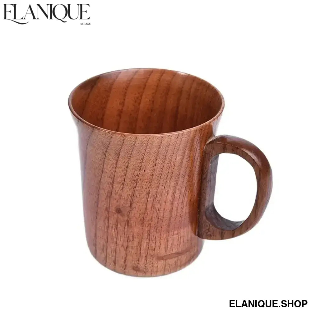 Drinkware Vintage Wooden Tea Cup Handmade Japanese Style Wood Coffee Mug with Handle Solid Wood Drinking Cup for Milk Hot Drinks - Elanique