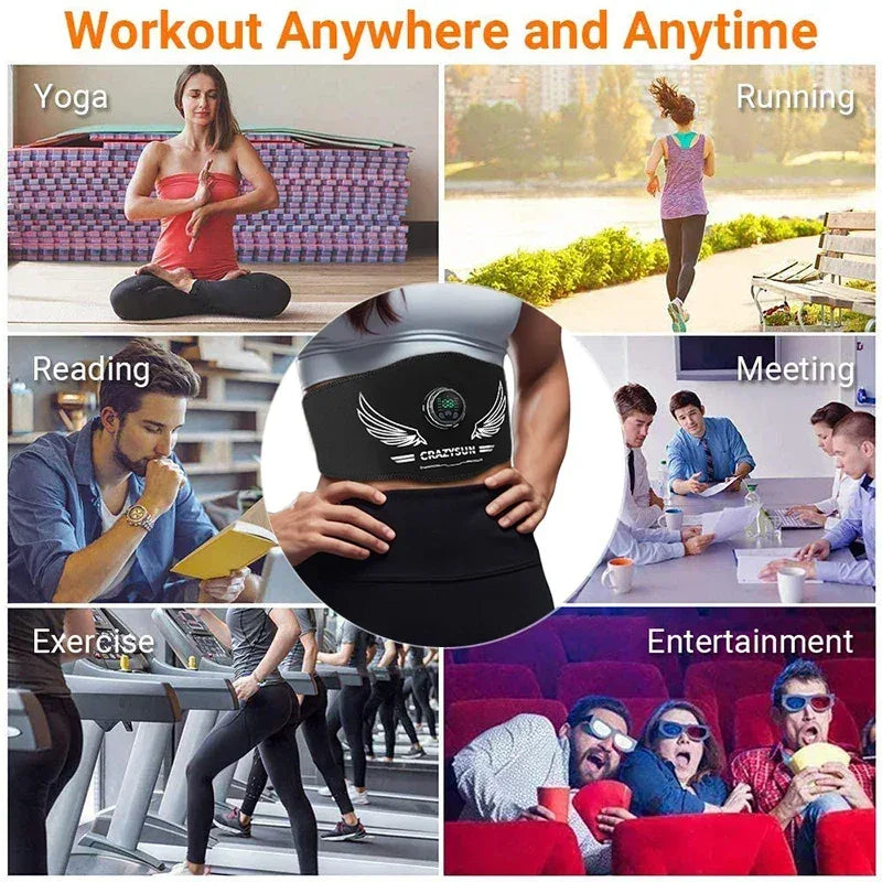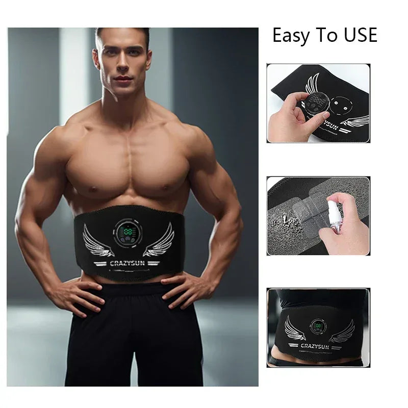 Electric EMS Muscle Stimulator Abs Trainer Abdominal Toning Belt Waist Slimming Belts Body Fitness Massager USB Recharge - Elanique