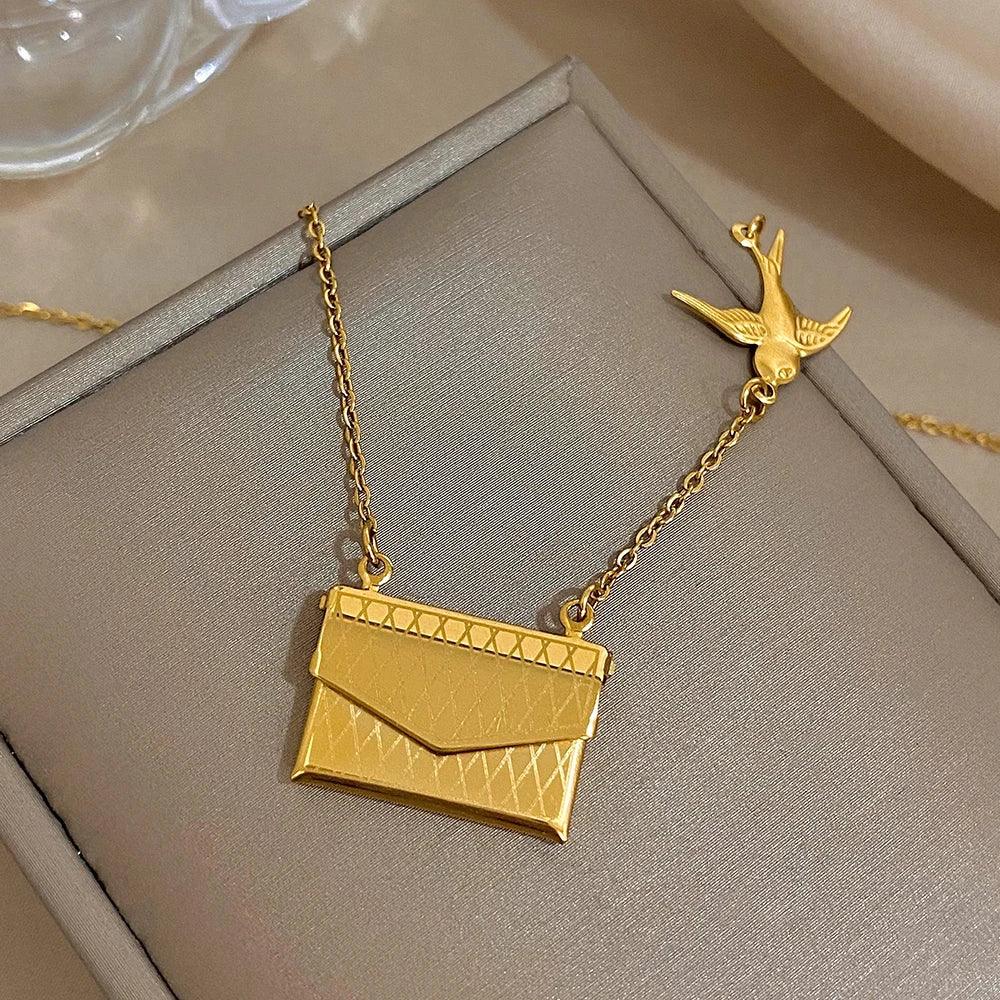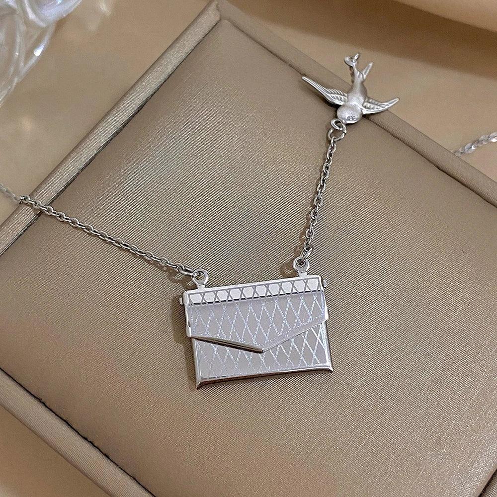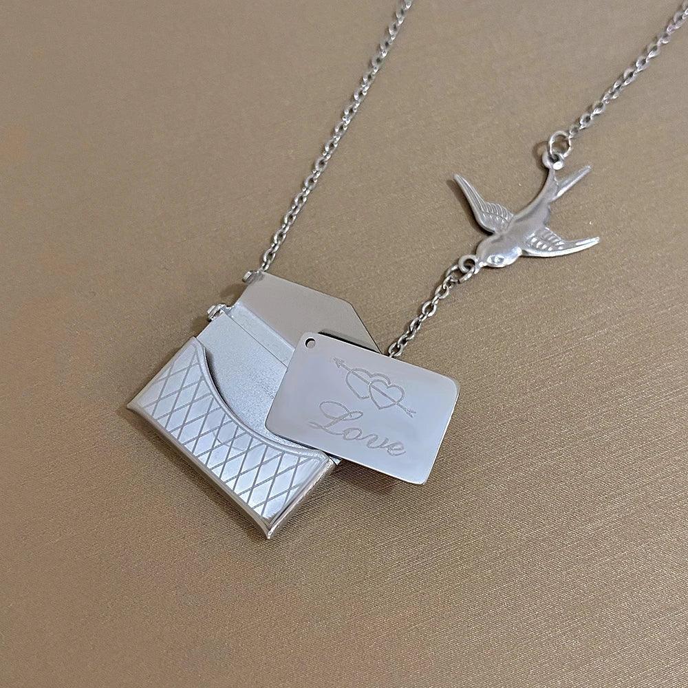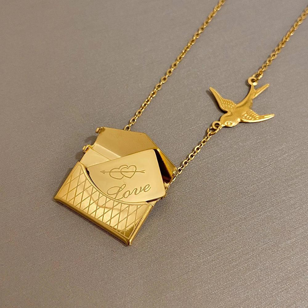 Fashion Envelope Necklace Chain Necklaces Engraved Love Letter Hidden Message Charm Locket Choker Friendship Lover Jewelry Gift - Elanique