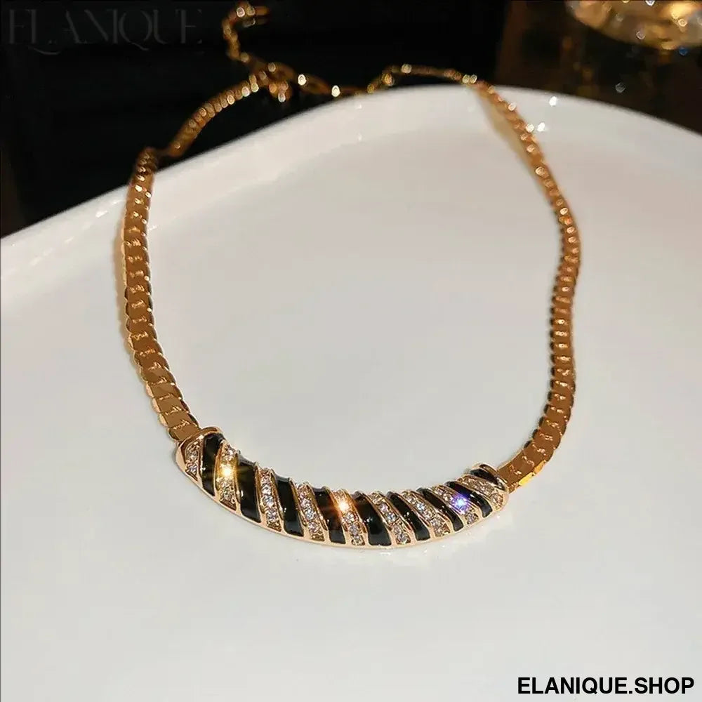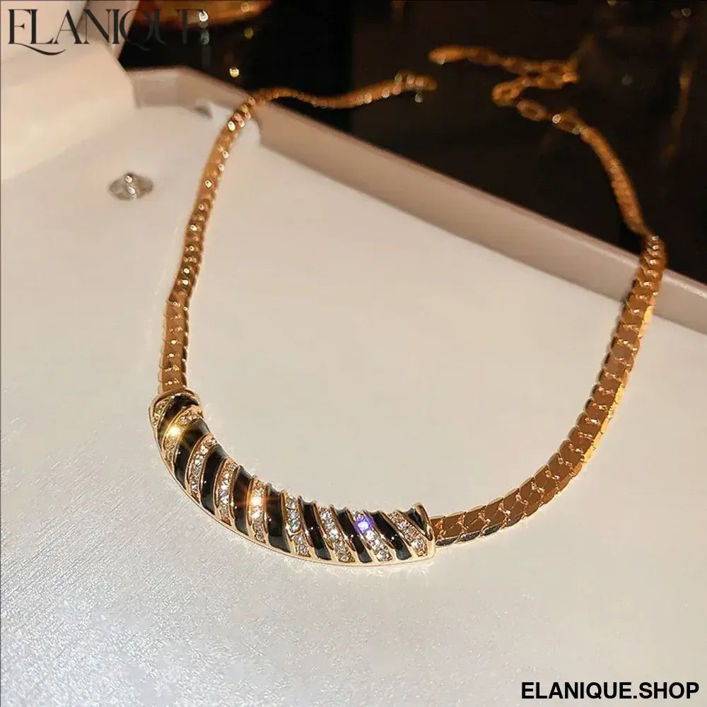 European and American Metal Heavy Design Necklace Retro Classic Striped Collarbone Chain Choker Luxury Jewelry For Women - Elanique