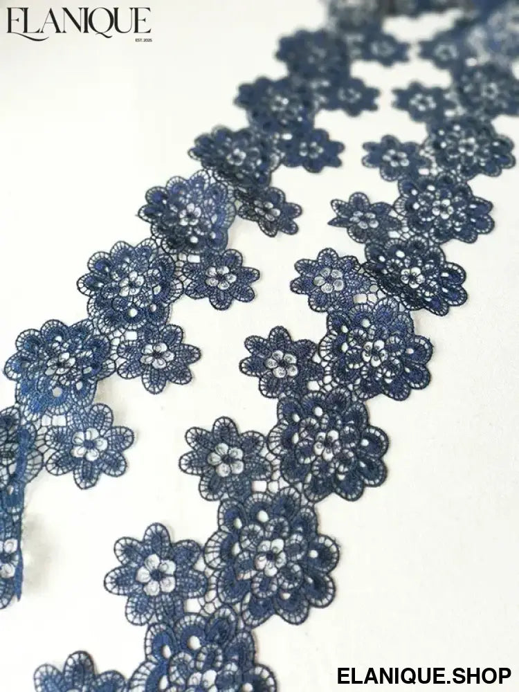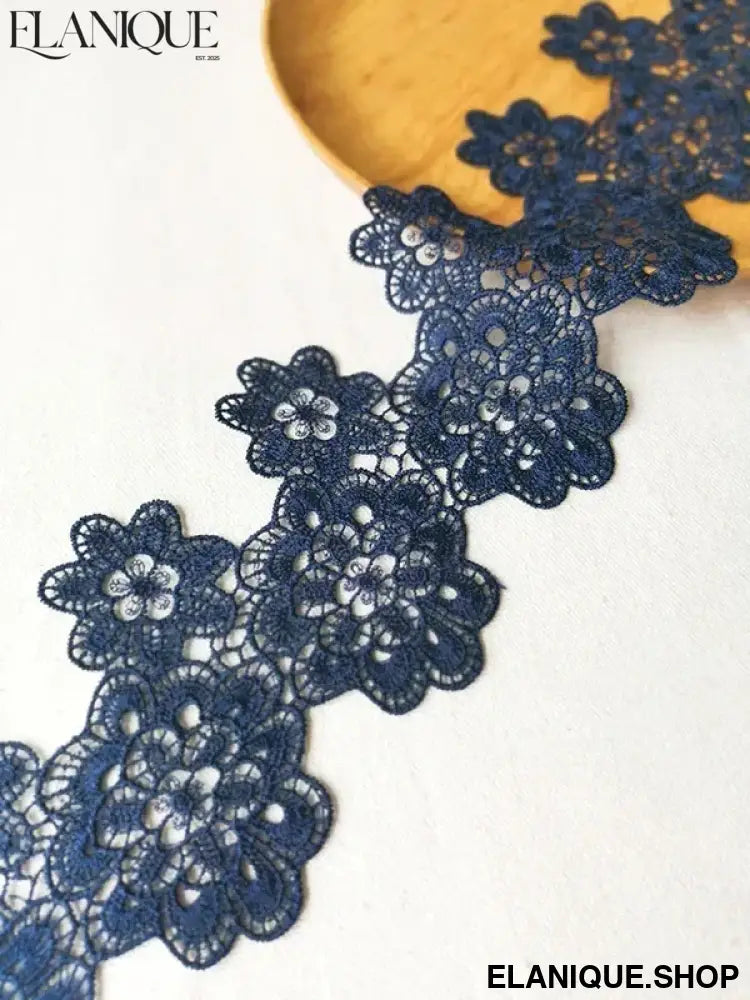 Exquisite Royal Blue Soluble Lace Guipure Cotton Fabric Embroidered Flowers Lace Ribbon Trim DIY Handmade Bags Cloth Lace Decor