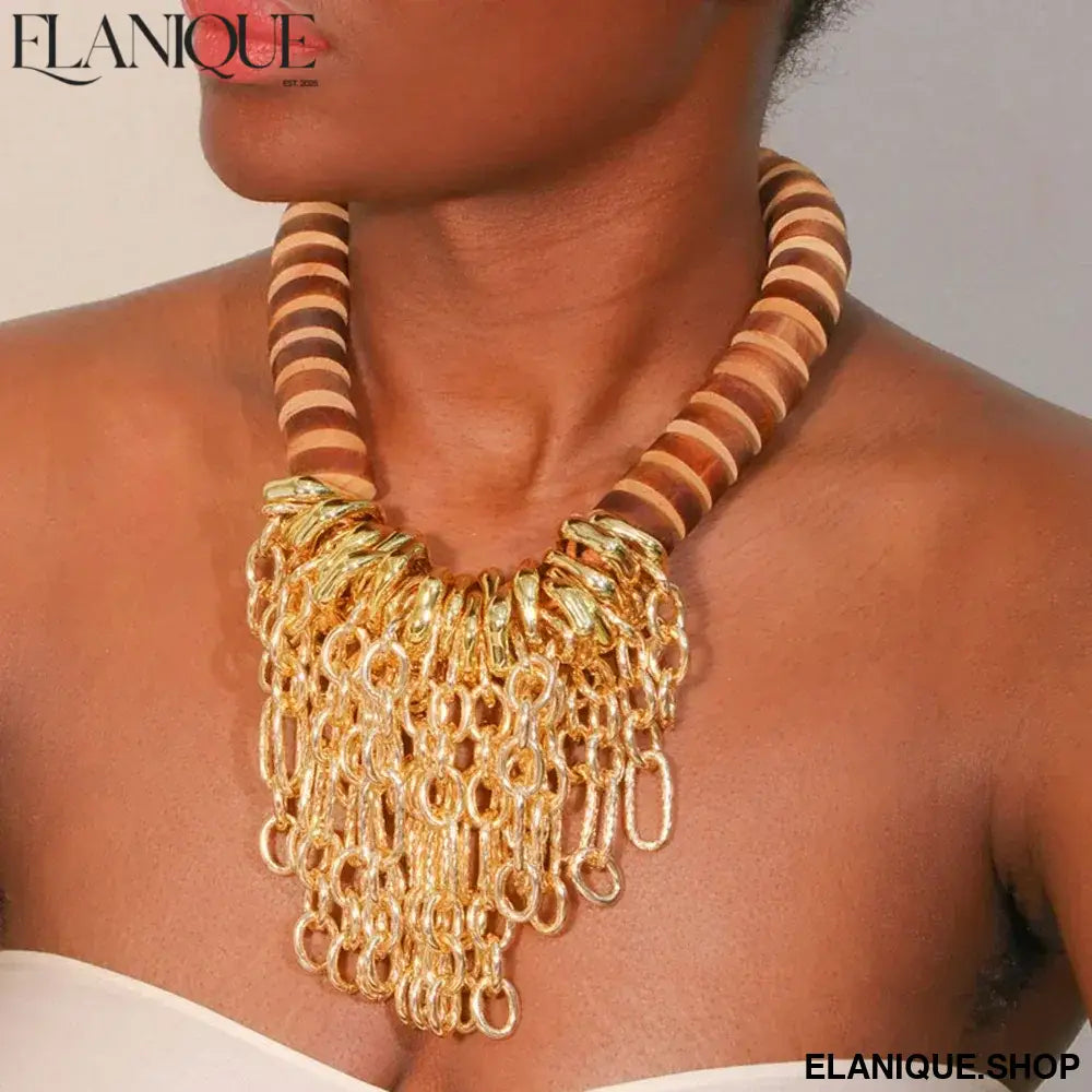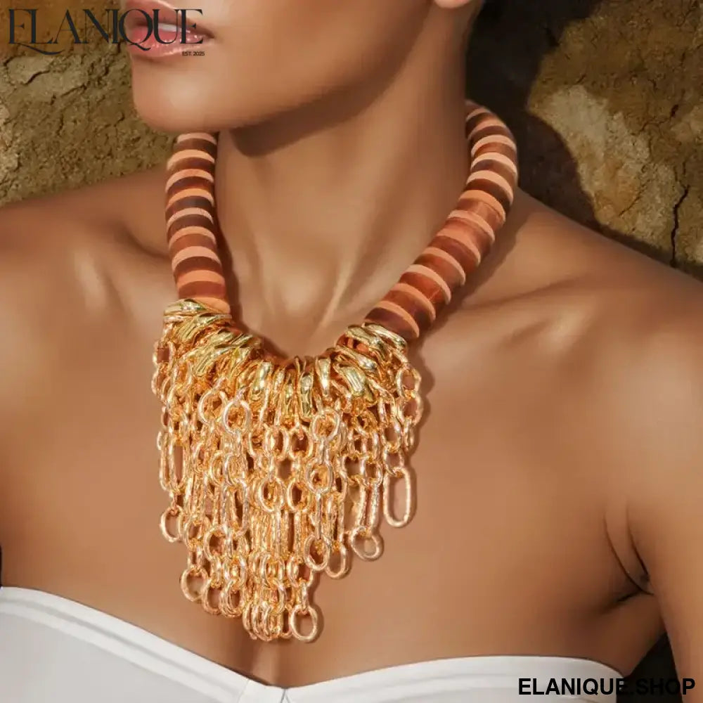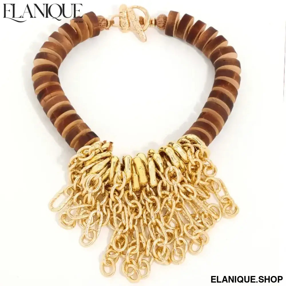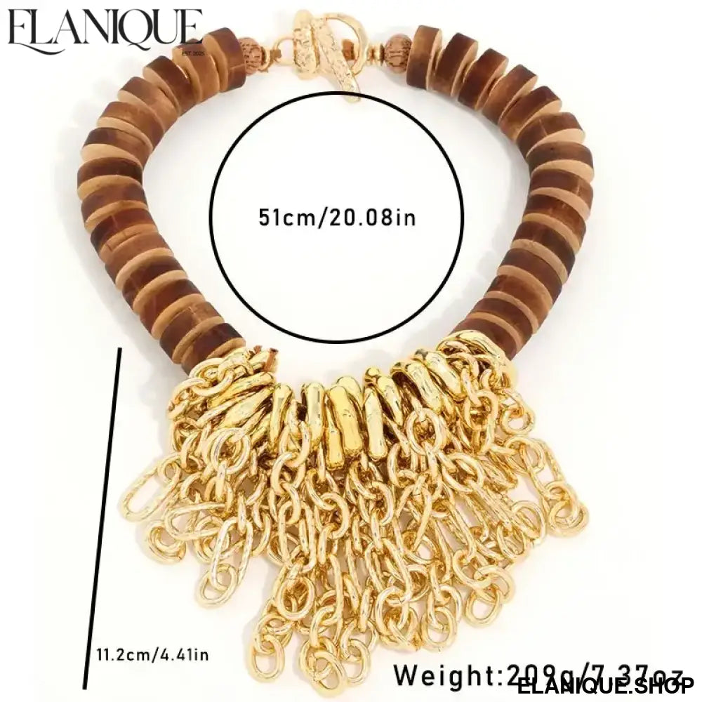 Fashion Statement Boho Necklace Big Beads&Chanis Handmade for Women Trendy Party Jewelry - Elanique