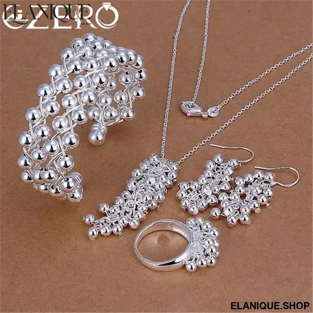 Popular brands Fine Grape beads pendant bangle 925 Sterling Silver Jewelry set earrings bracelet rings necklaces for women gifts - Elanique