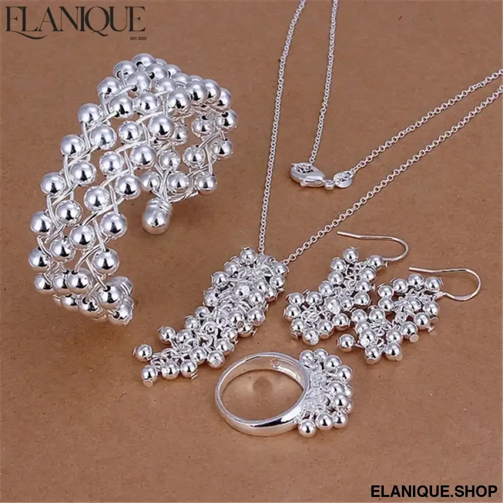 Discover the beauty of nature-inspired design with this fine grape beads pendant jewelry set crafted from genuine 925 sterling silver. This comprehensive collection includes coordinated earrings, bracelet, rings, and necklaces featuring the elegant grape bead motif that brings organic sophistication to your jewelry wardrobe.