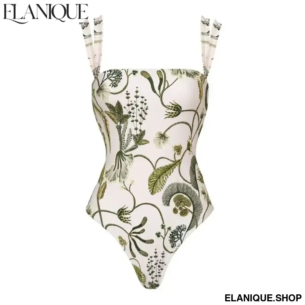 Floral Printed Bikini Set for Women, Ruffle Bikinis, Strappy Bandage Swimwear, Brazilian Bathing Suit, New Arrival - Elanique