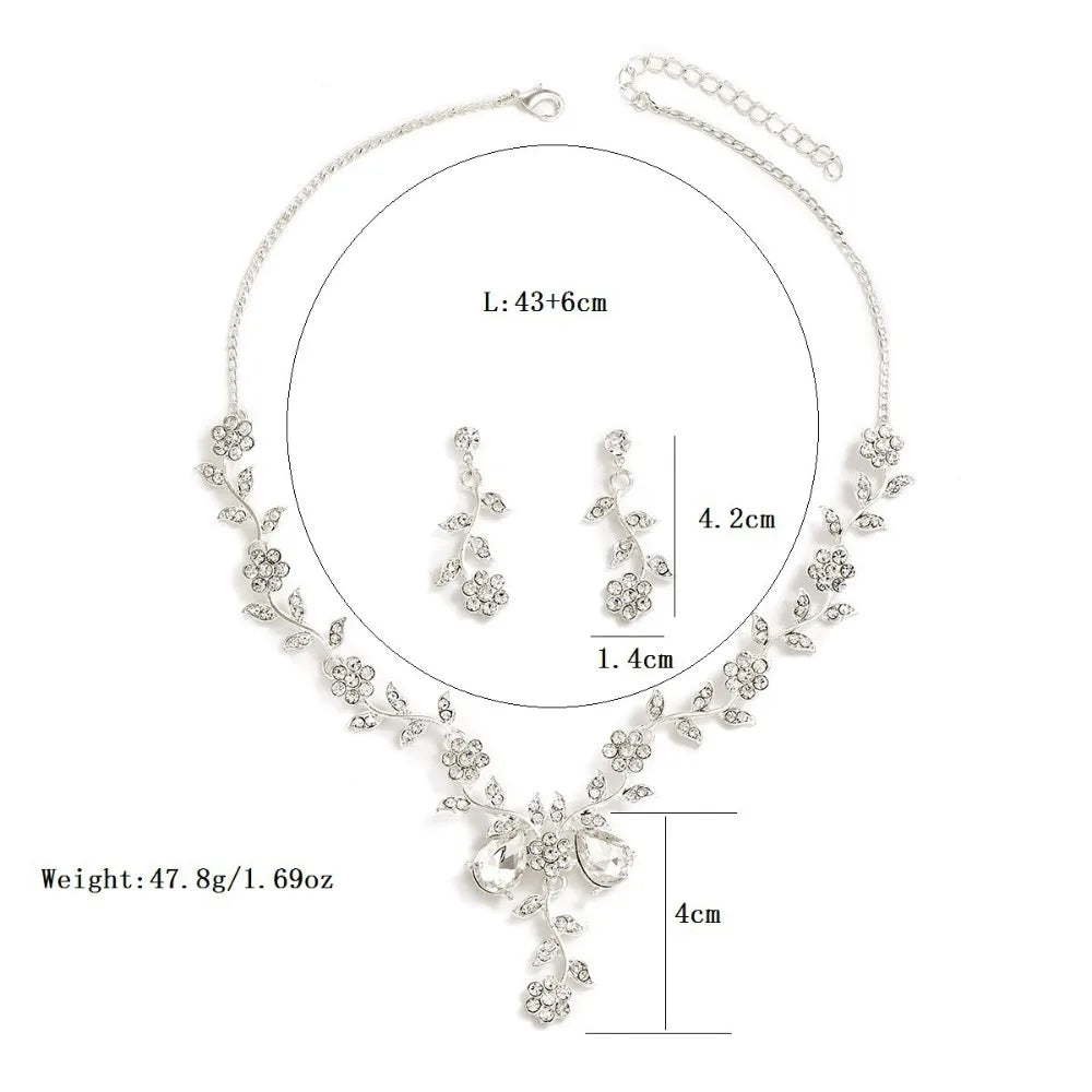 Floral Vine Rhinestone Jewellery Set | Bridal Necklace & Earrings