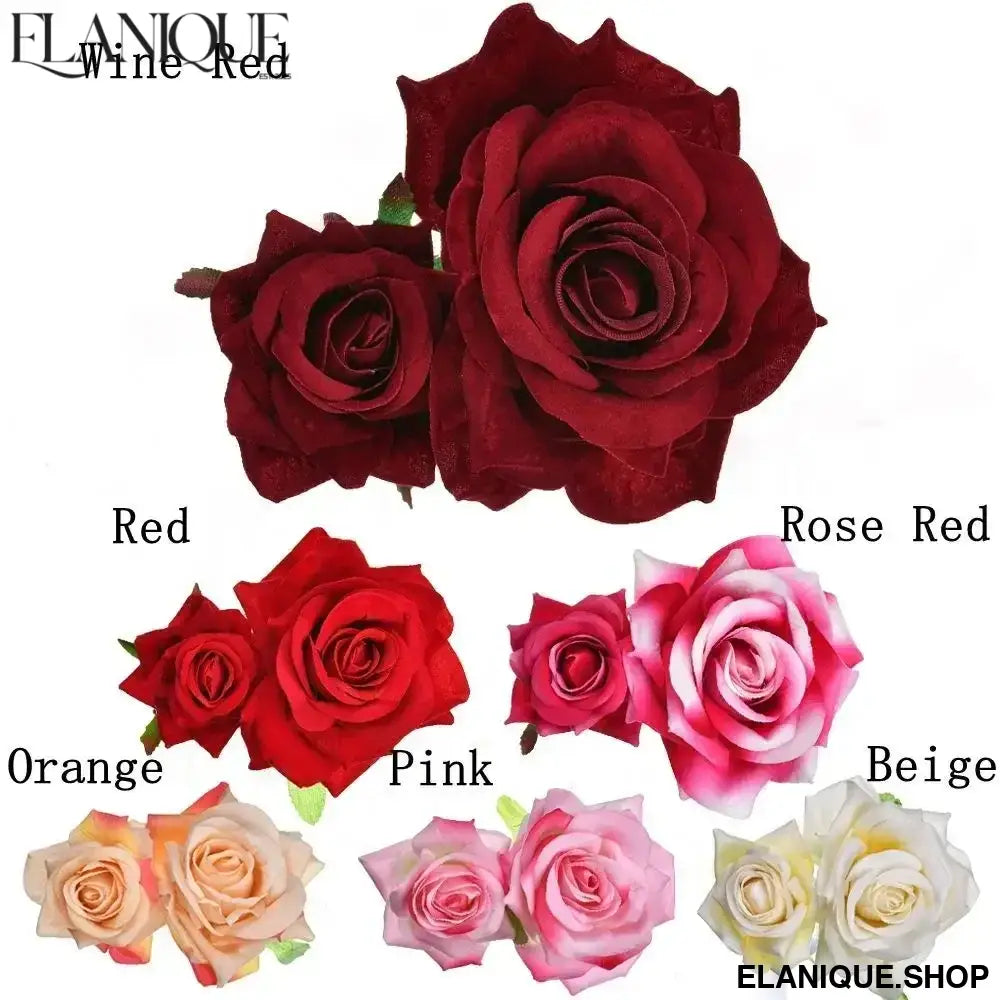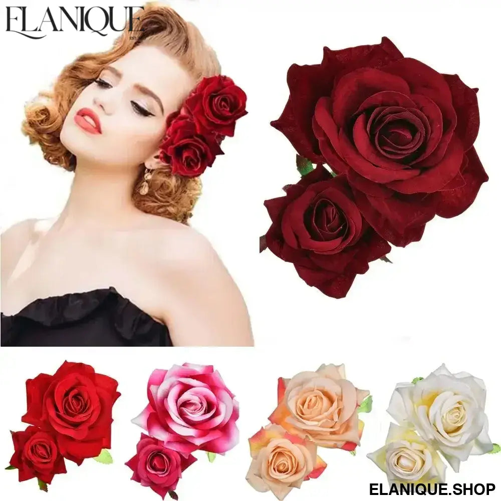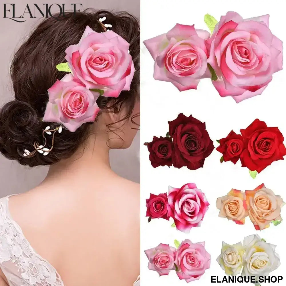 Ladies Festival Handmade Bridesmaid Hair Jewelry Wedding Accessories Bridal Flower Hair Clip Double Rose Hairpin - Elanique