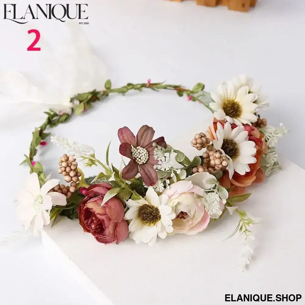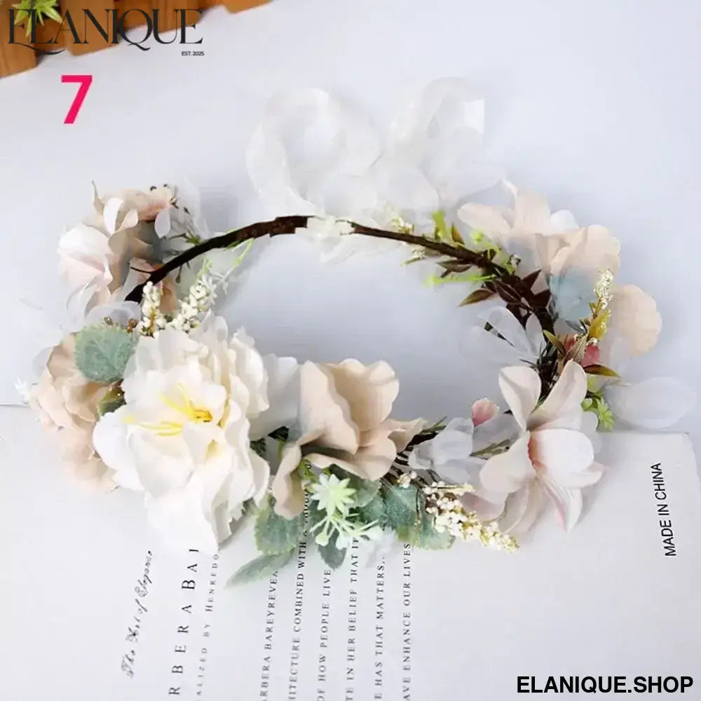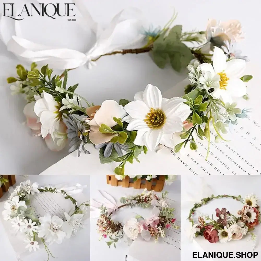 Handmade Hair Jewelry Beach Wreath Bridal Hairband Headwear for Wedding Flower Tiara Flower Wreaths Garland Crown - Elanique