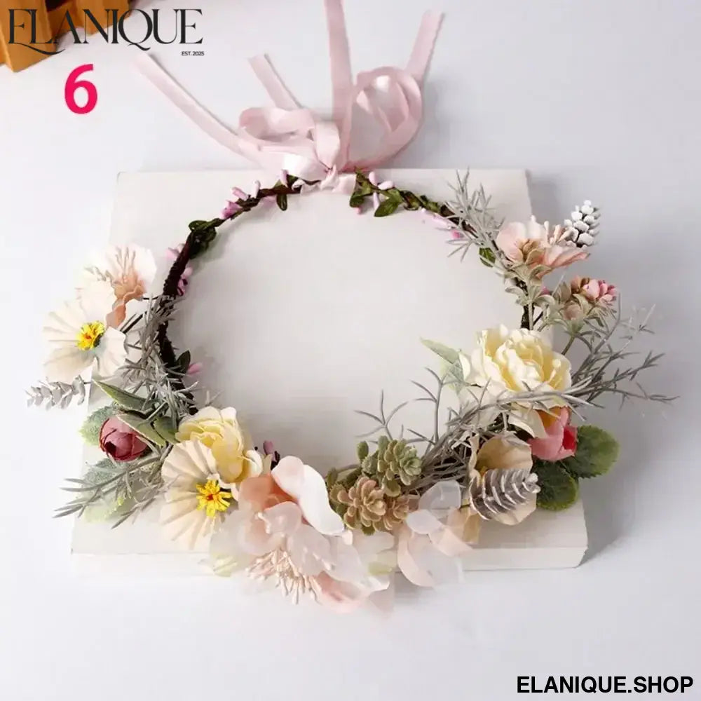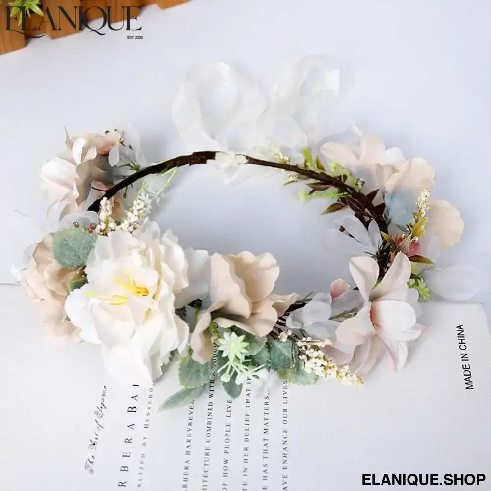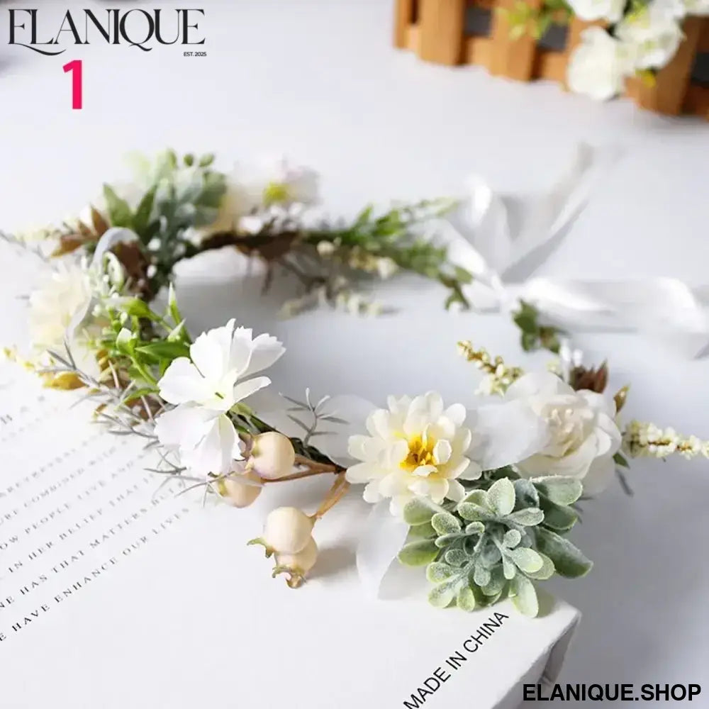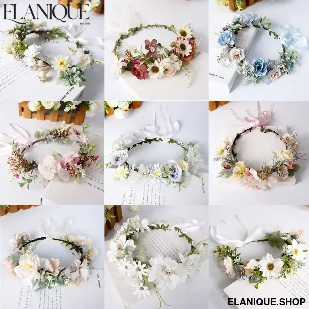 Handmade Hair Jewelry Beach Wreath Bridal Hairband Headwear for Wedding Flower Tiara Flower Wreaths Garland Crown - Elanique