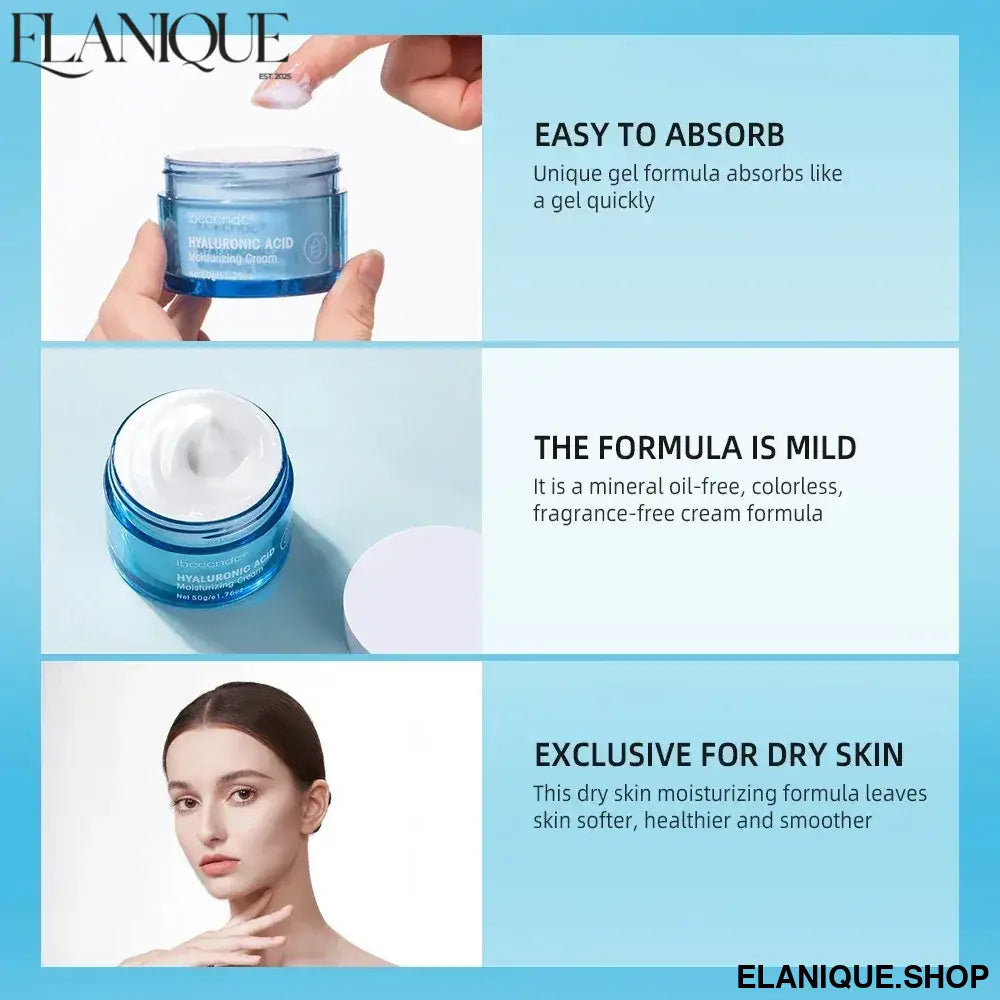 Hyaluronic Acid Gel Cream Hydrating Face Moisturizer For Hydrate&Smooth Extra-Dry Skin Nourishing Improve Dryness Facial Lotion - Elanique