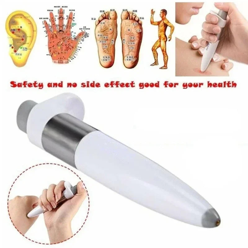 Using targeted electric pulse stimulation, this handheld meridian energy pen delivers precise analgesia — pain relief — to the neck, shoulders, legs, face, and beyond. It works by activating the body's acupuncture points through gentle, calibrated pulses that interrupt pain signals and encourage the natural release of tension. The result is a deep, satisfying relief that you can feel working.