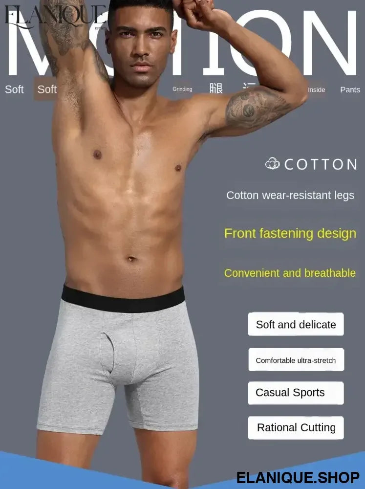 Long Boxer For Man Cotton Men's Panties Family Print Boxershorts Mens Open Front Underwear Sexy Male Underpants Shorts