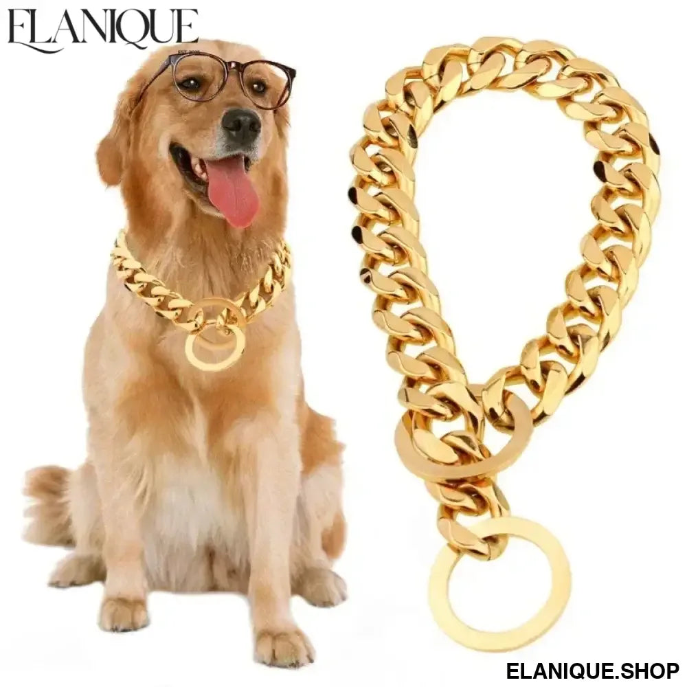 Luxury Dog Collar Gold Pet Necklace Dog Chain Choker For Pitbull Bulldog Teddy French Bulldog Metal Collar Pets Jewelry Products - Elanique
