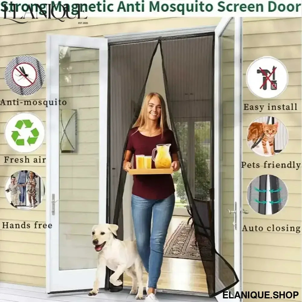Magnetic Screen Door Screen Door Mesh Keep Bugs Out Heavy-Duty Mesh Curtain Pet and Kid Friendly Works with Front Doors - Elanique