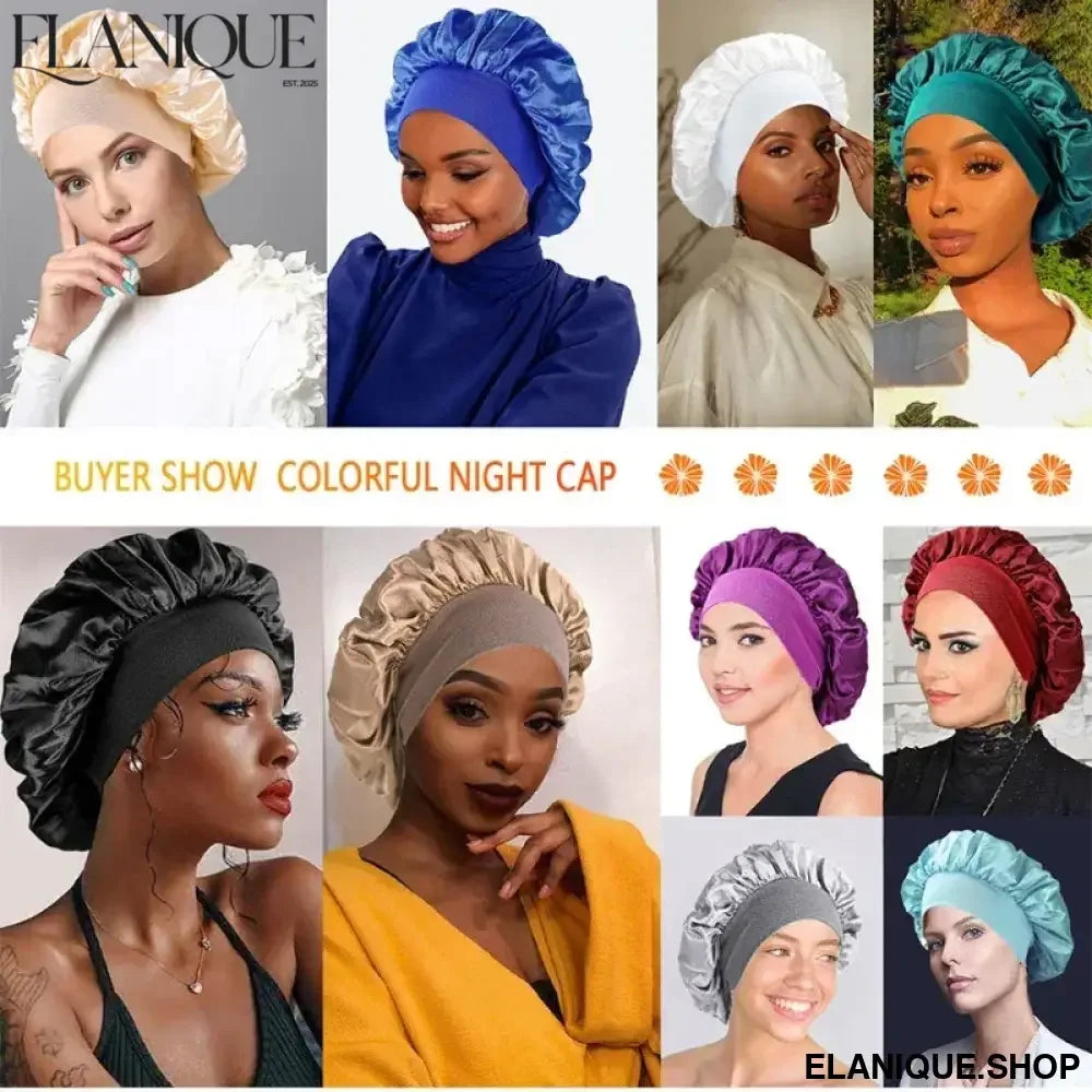 New 1pcs Silk Bonnet for Sleeping Round Haircare Women Shower Cap Head Shower Hat Hair Accessories Bathroom Products Hair Bonnet - Elanique