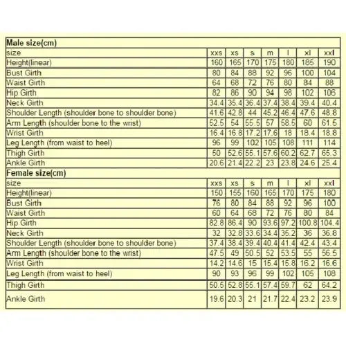 SizeXSSMLXLChest32"34"36"38"40"Waist26"28"30"32"34"
