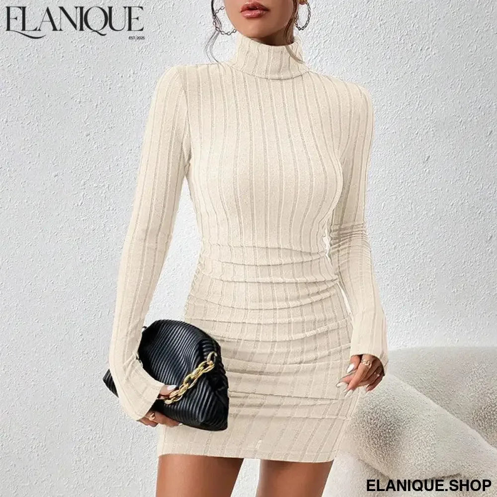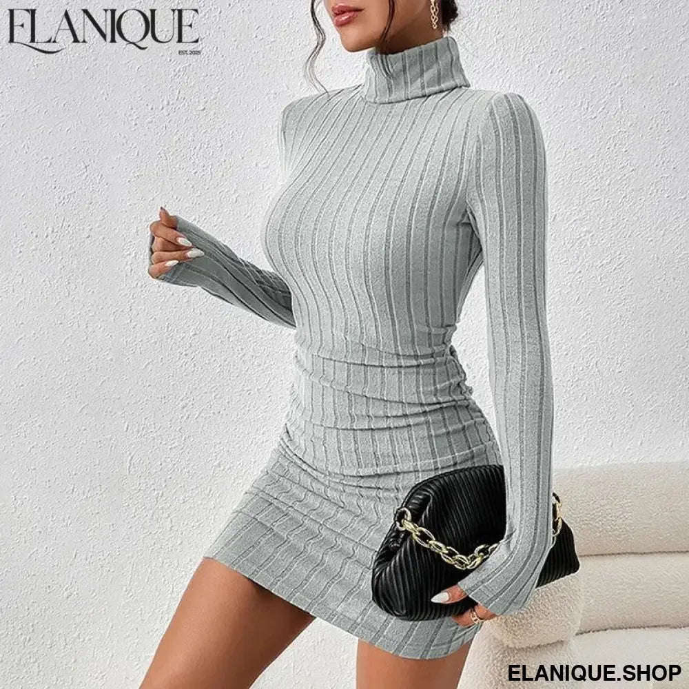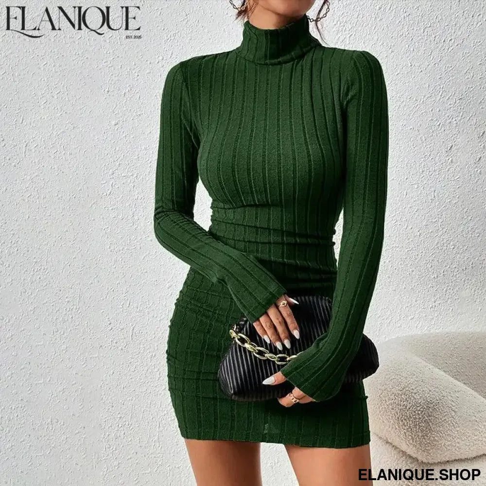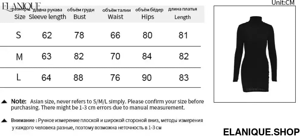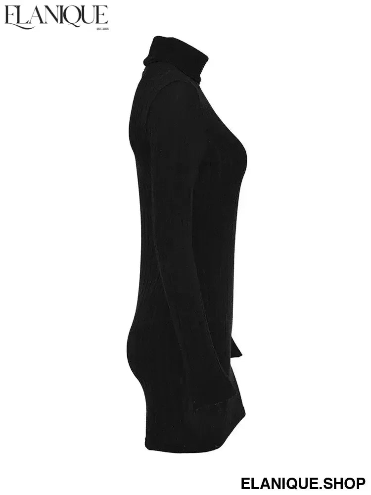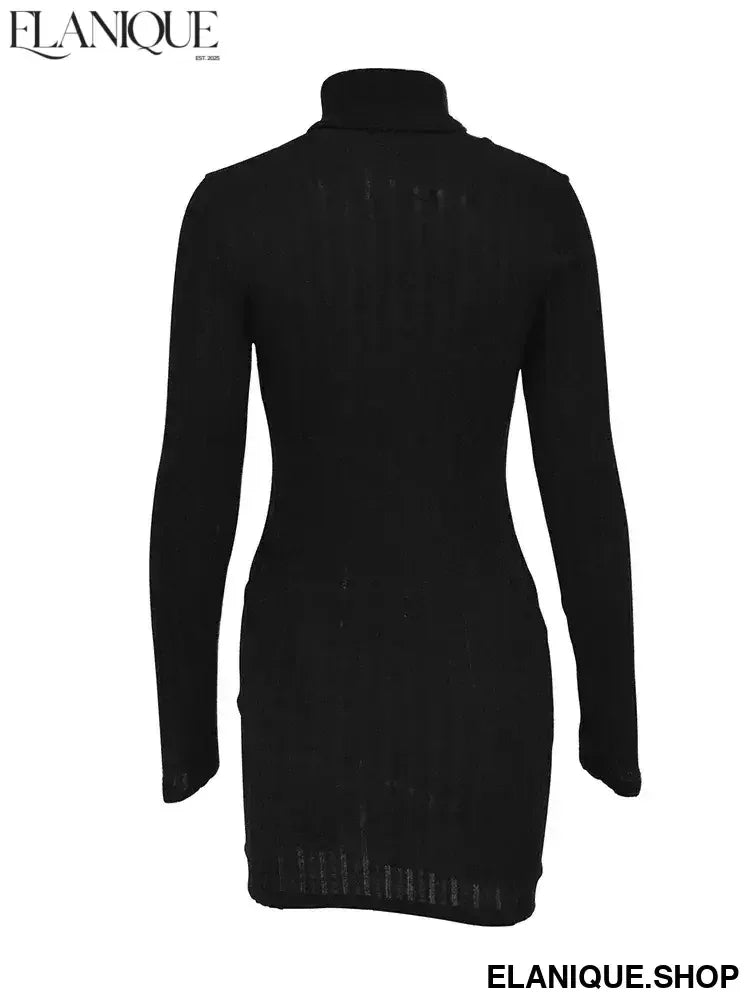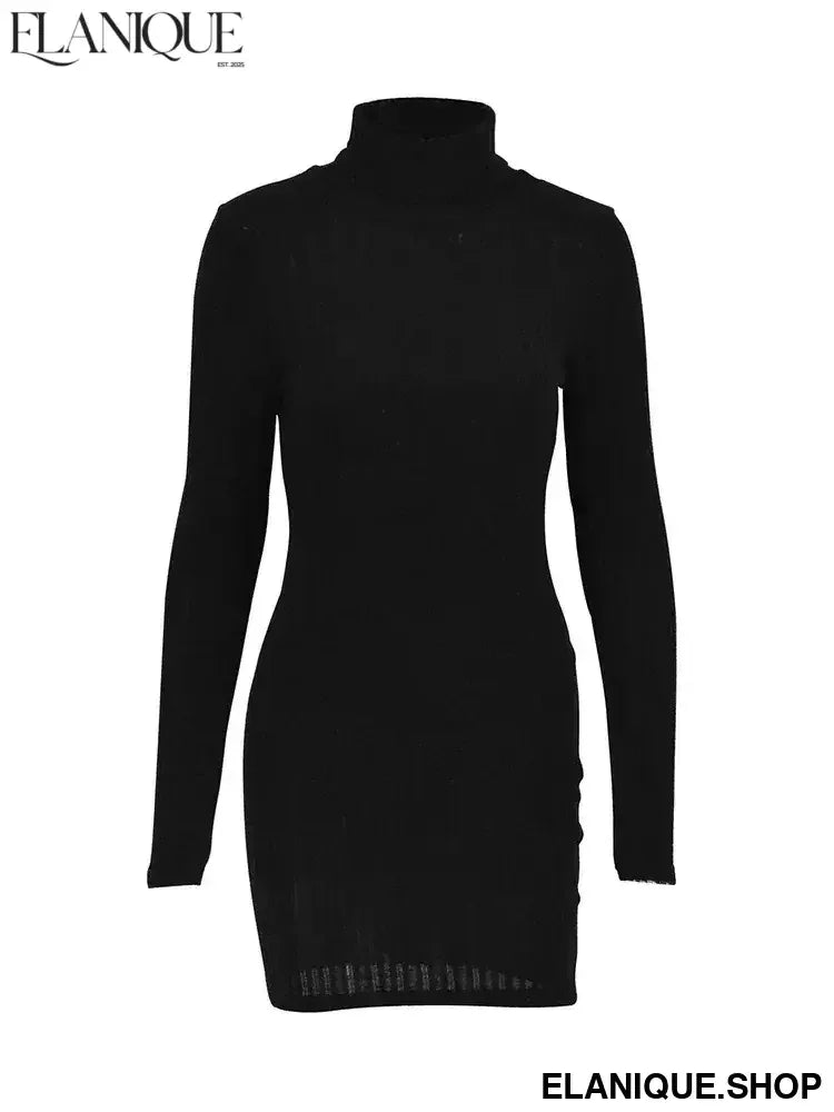 New Sexy Mini Dress For Women Autumn Black Solid Turtleneck Long Sleeves Sheath Dress Club Elegant Bodycon Party Dresses Female - Elanique