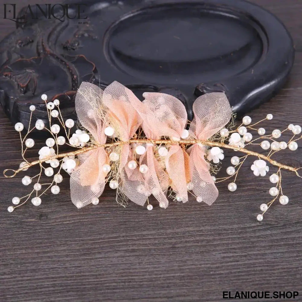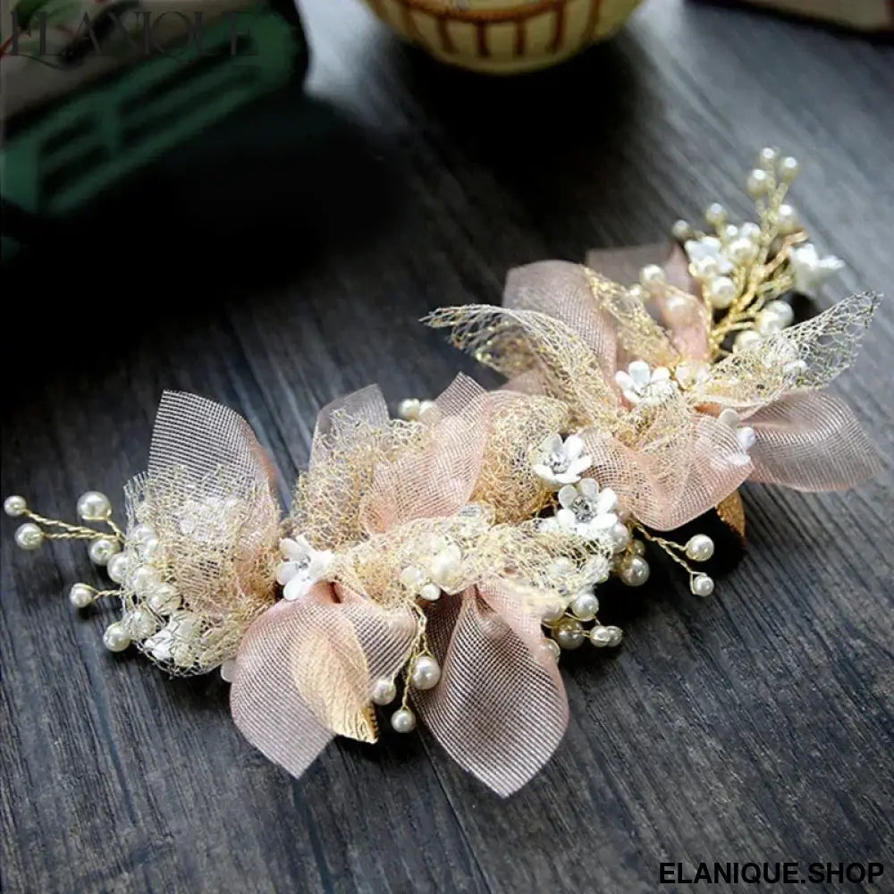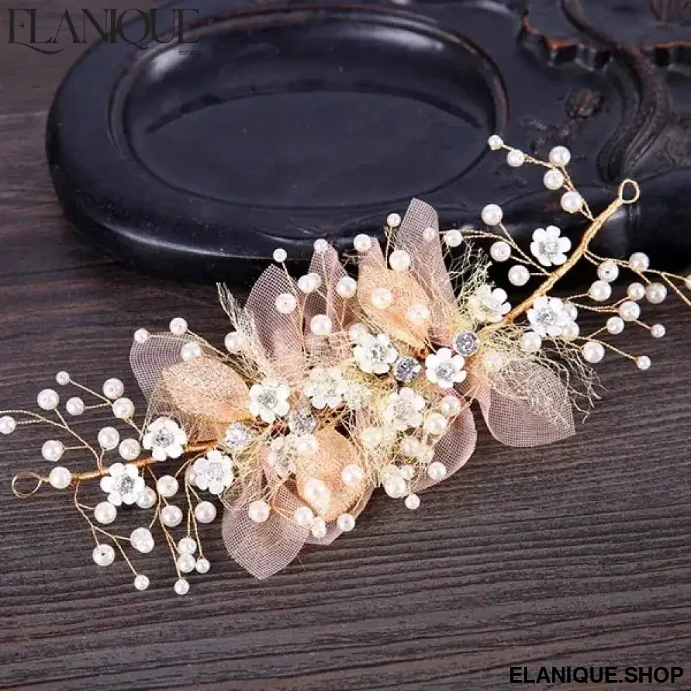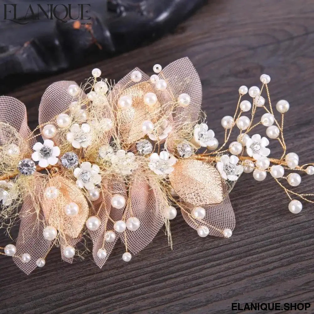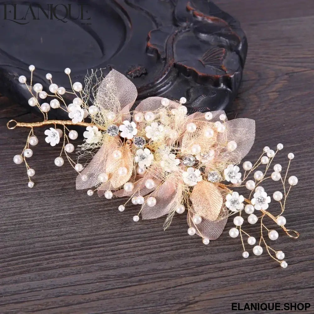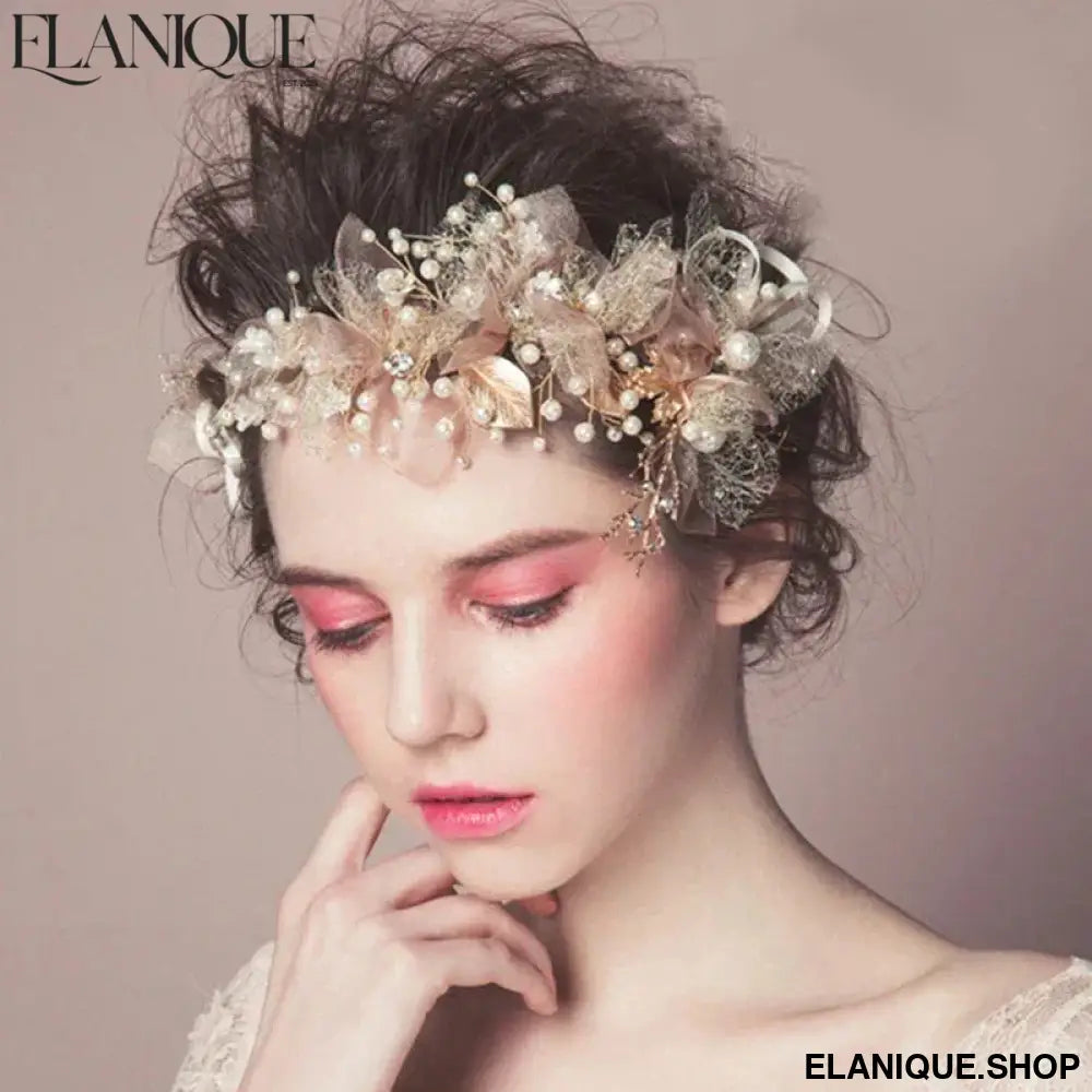 New Trendy Flower Hair Jewelry Gold Pearl Handmade Bridal Wedding Headband Rhinestone Hairband Women Hair Accessories Ornaments - Elanique
