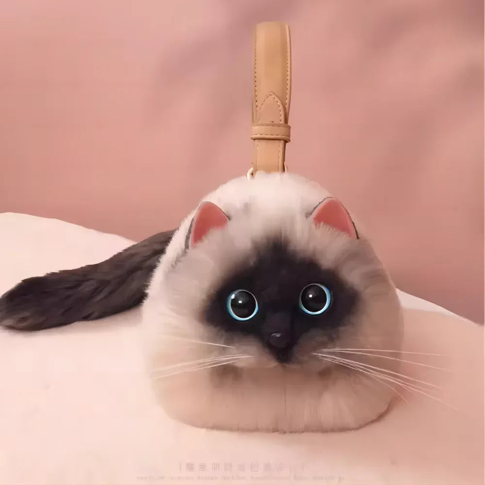 One Shoulder Bag Female Design Small Man Messenger Bag Versatile Hand Made Autumn and Winter Plush Cute Cat Bag - Elanique