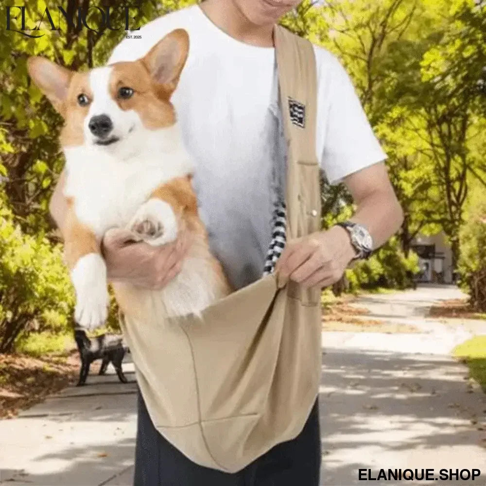 Polyester Pet Crossbody Shoulder Bag Large Capacity Breathable Puppy Shoulder Bags Comfortable with Safety Harness - Elanique