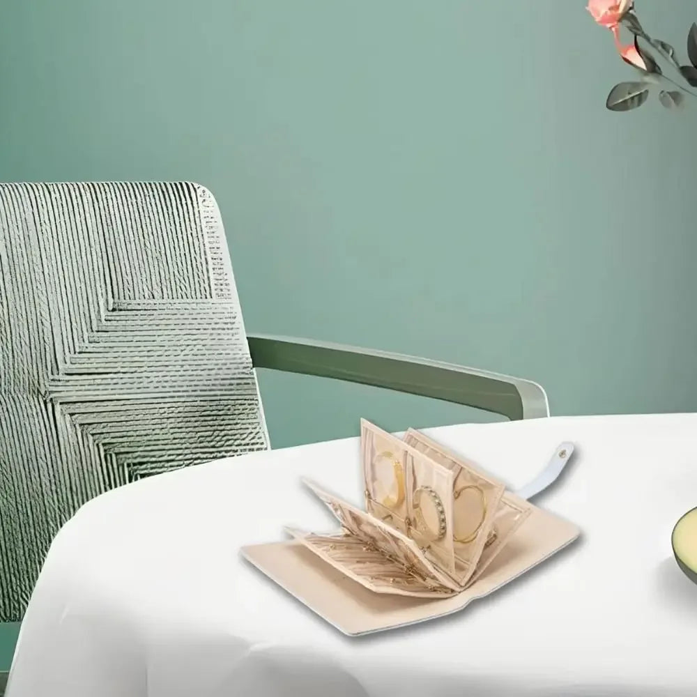 Flip through the pages like a jewellery catalogue. Find exactly what you’re looking for in seconds. Store it on a shelf, in a drawer, or in your travel bag — it fits anywhere and keeps everything tangle-free and perfectly organised.