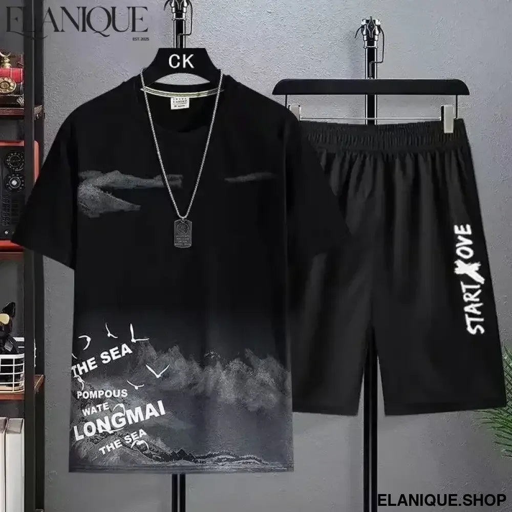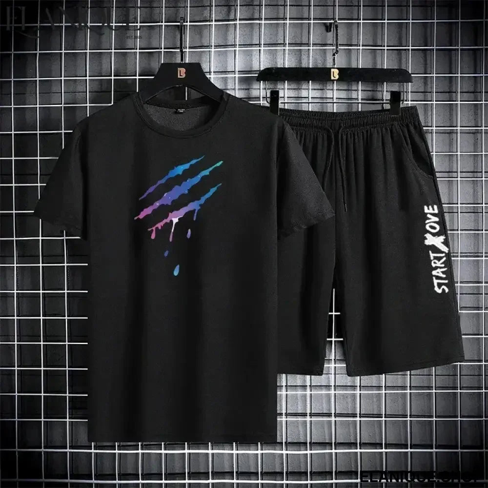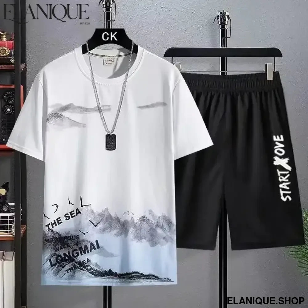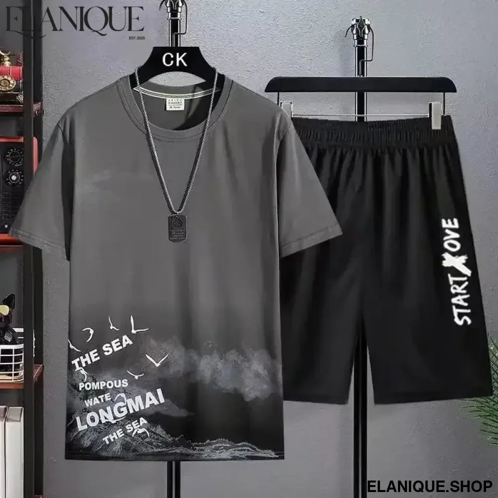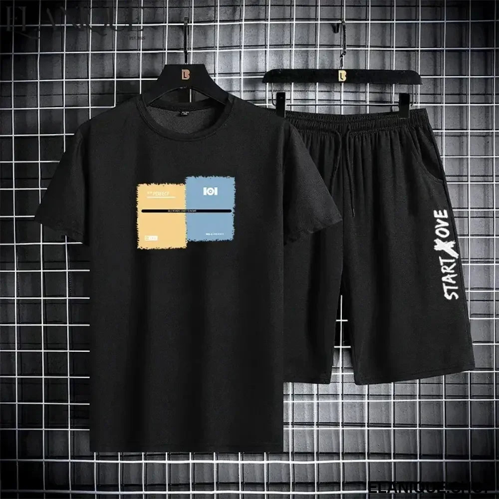 Trendy Suits for men Men's Summer Shorts Set Gym Outfit Student Short Sleeve Tee 2 Piece Set Tracksuits Men Casual Men Clothing