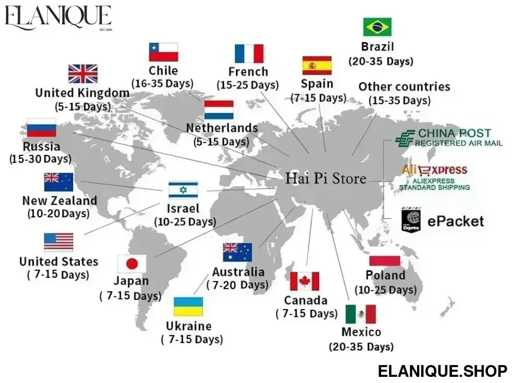 Orders typically ship within 7 business days. Delivery times vary by region but generally range from 7 to 12 business days. We offer FREE worldwide shipping on all orders. Once your order is shipped, you'll receive a tracking number via email.