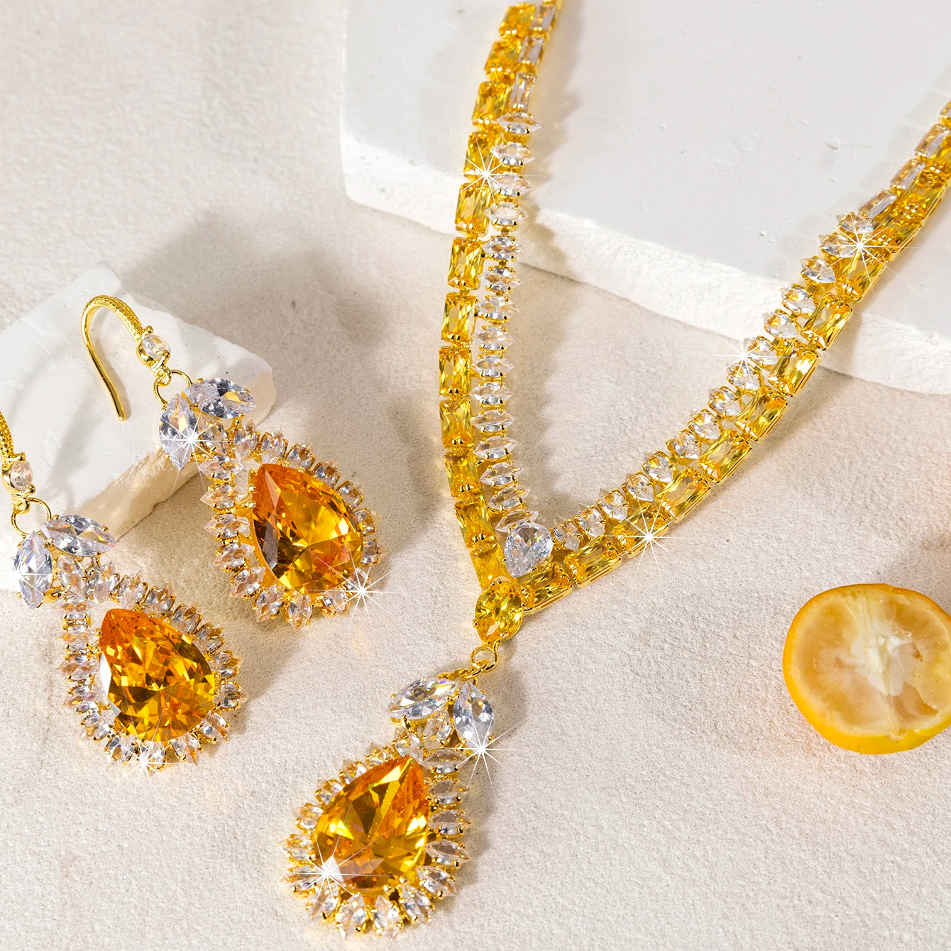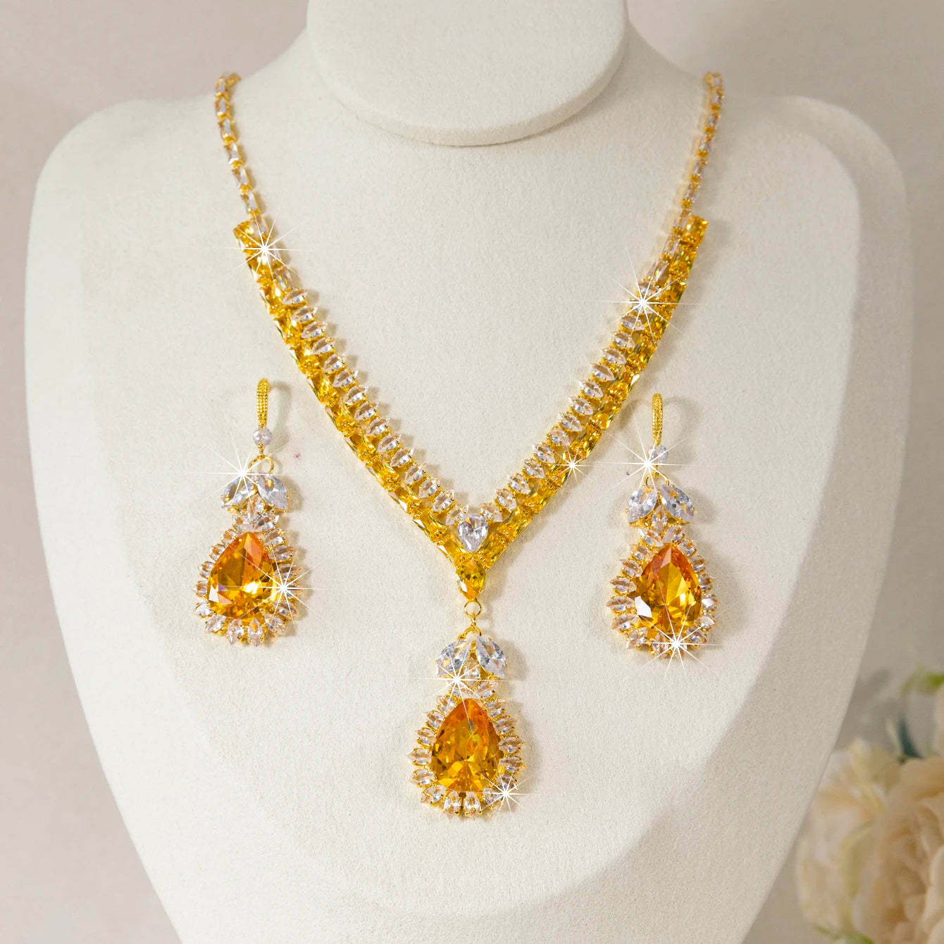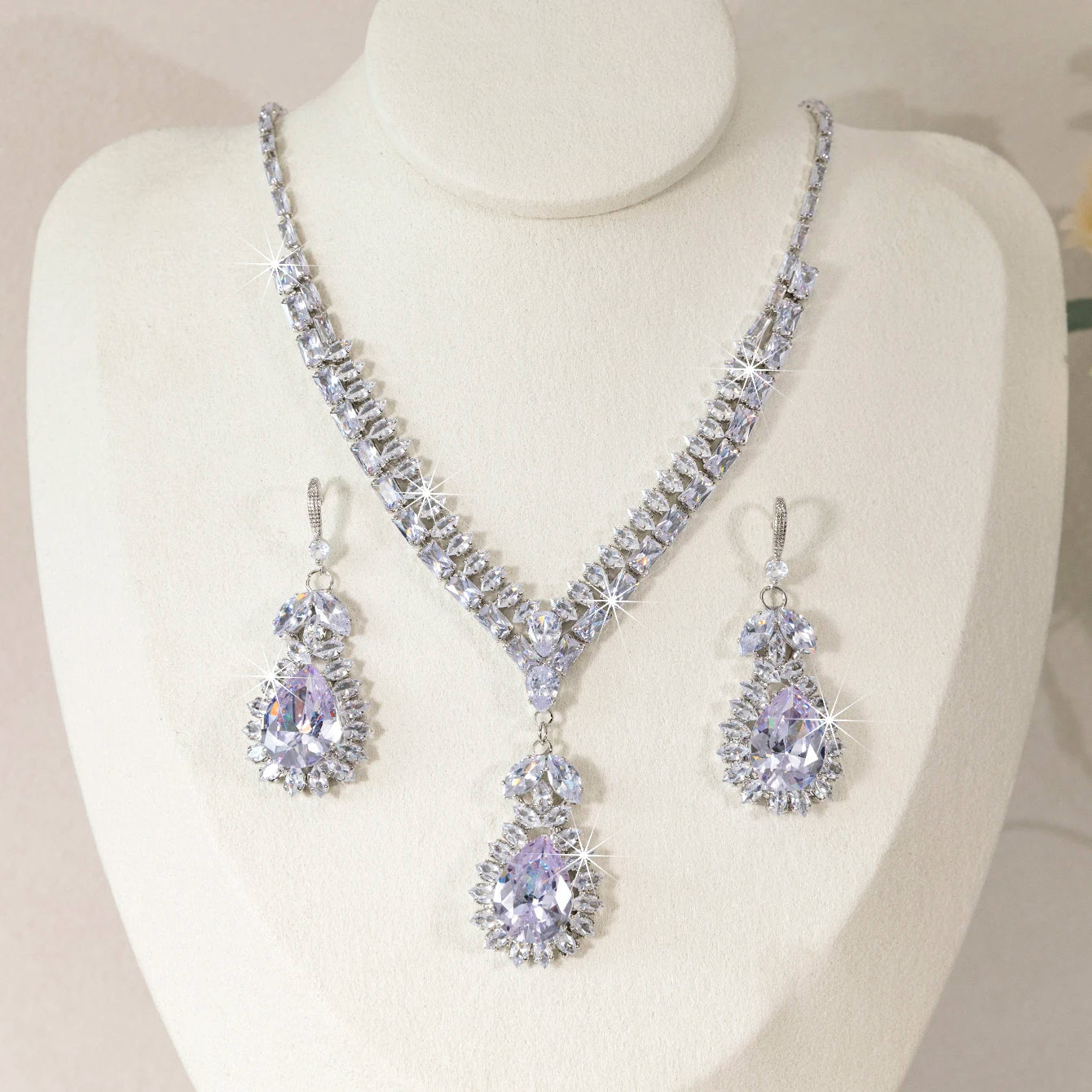 Each piece features a teardrop water droplet motif set with sparkling stones that catch and scatter light with every movement. Versatile enough for daily wear, stunning enough for weddings, banquets, and evening parties — this set is the one you reach for when you want to feel your most beautiful.