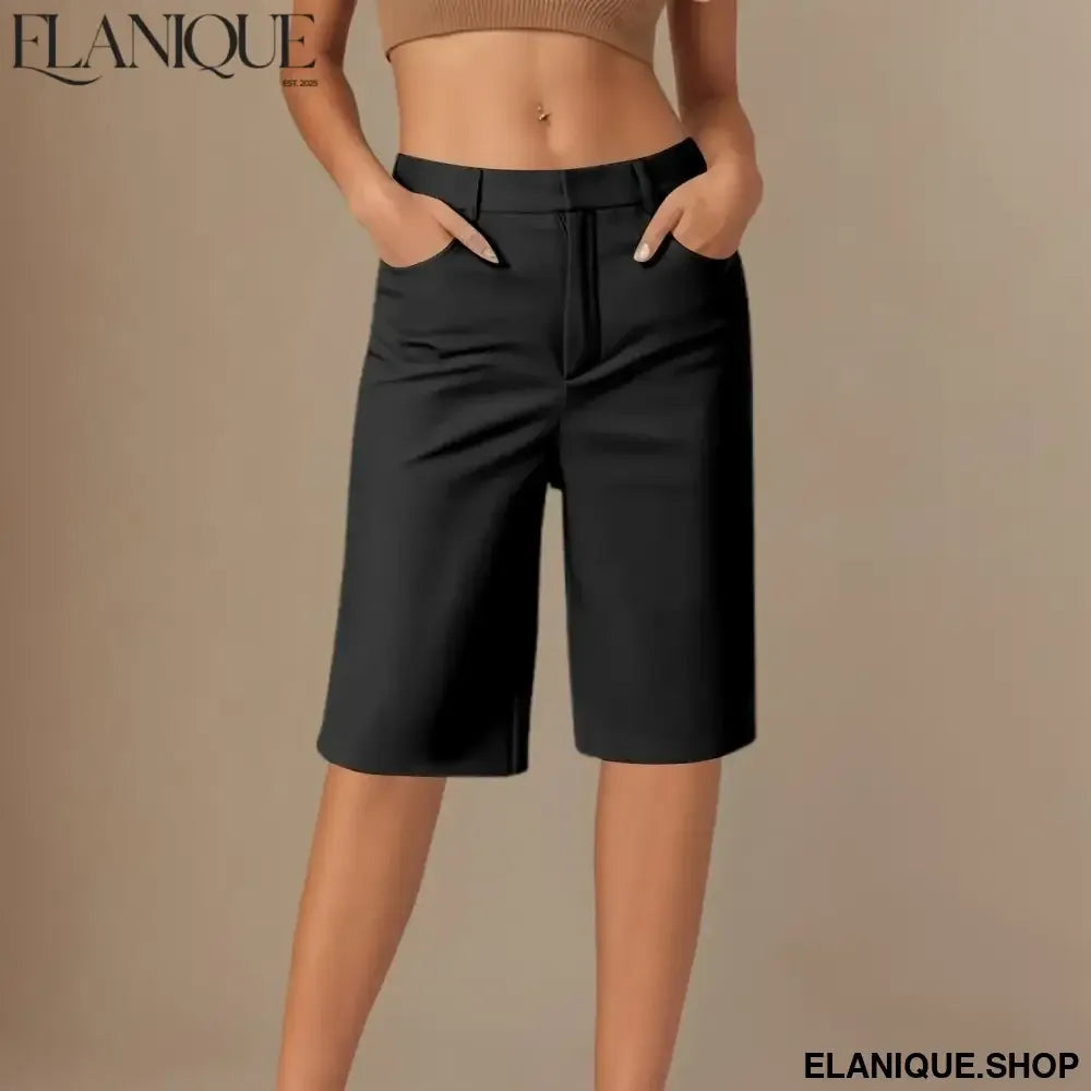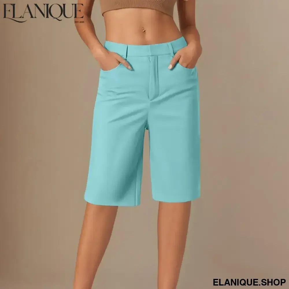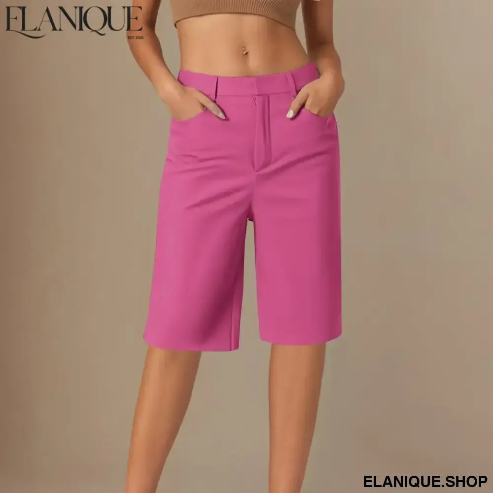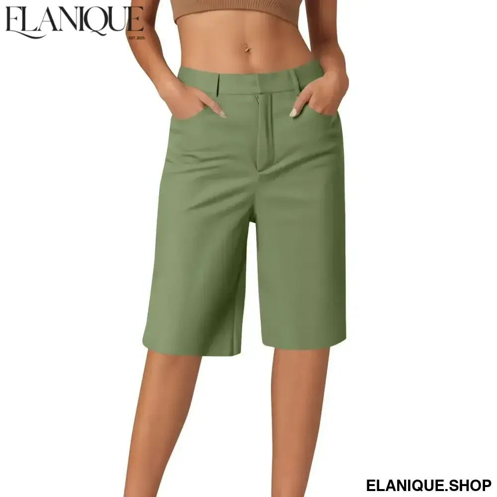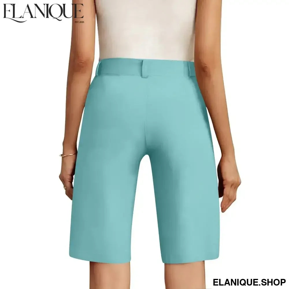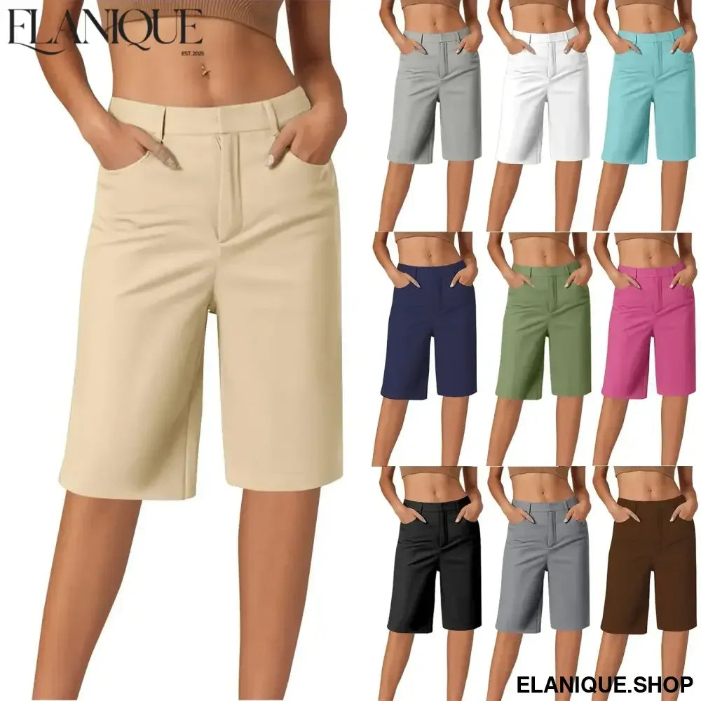 Women's cargo shorts casual fashion straight pants solid color high waist half pants with pockets hiking holiday casual shorts